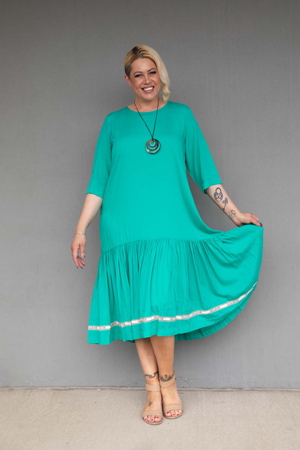 The Annette dress from Jellicoe is a Magazine exclusive piece that exudes elegance with its distinct features! The textured soft tencel blend makes for a comfortable and breathable wear, while the drop waist creates a flattering silhouette. The dress is adorned with an eye-catching Jellicoe feature trim that elevates the entire look. Perfect for any occasion, this dress is a definite standout in any wardrobe.