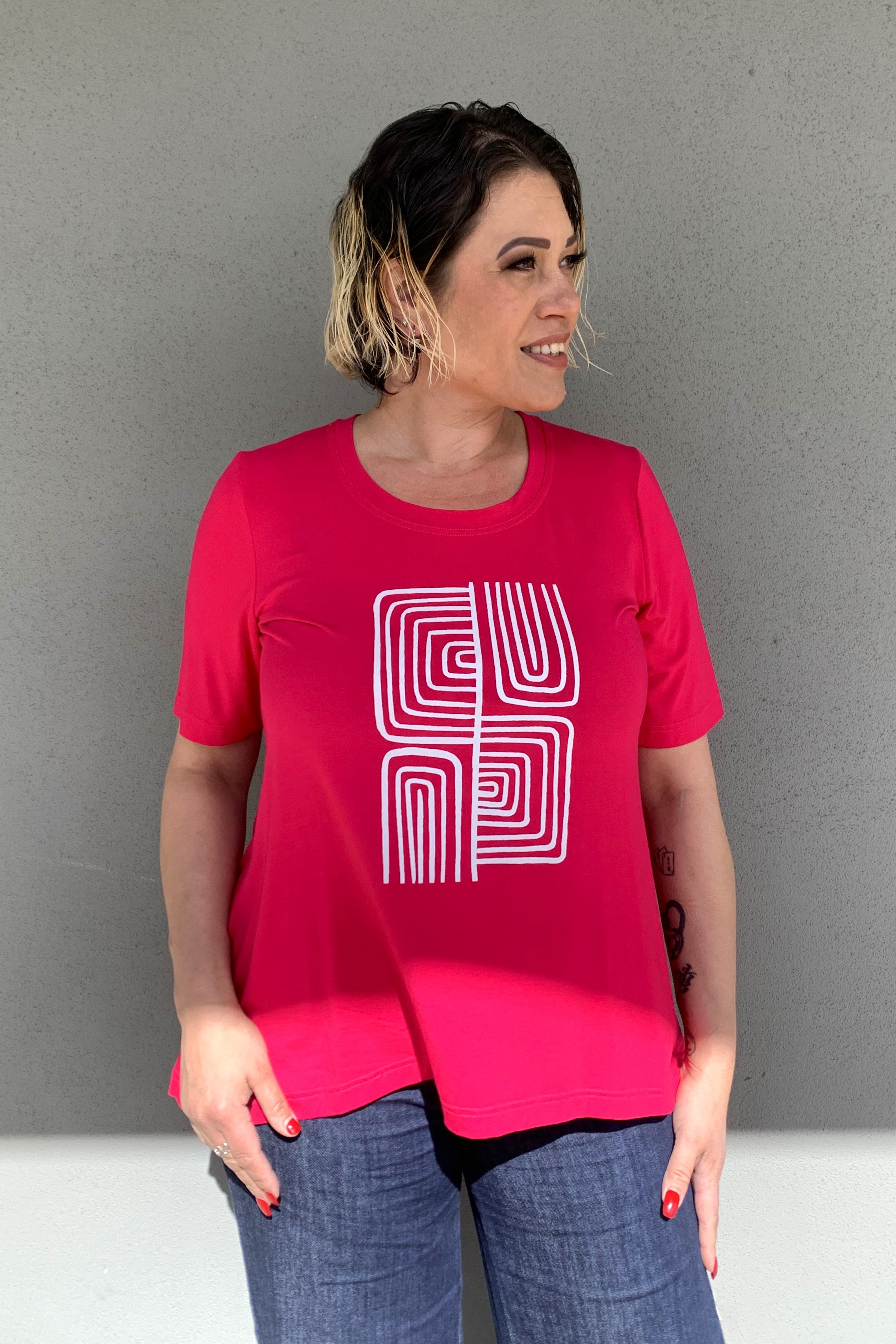Proudly made in New Zealand, and crafted in a soft stretch fabric, the Cashews Print Tee Shirt is ideal for everyday wear. There's a flattering scoop neck, fit and flare shaping for ease of fit. We love the striking screenprint on the front that pairs so well with a white pant or denim.