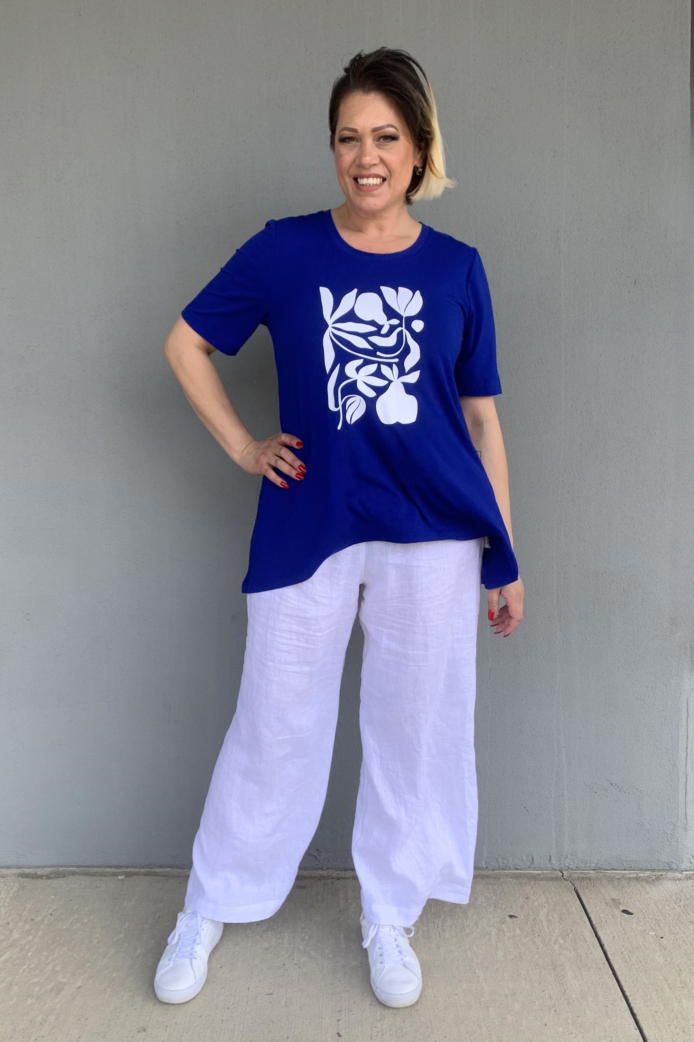 Proudly made in New Zealand and crafted in a soft stretch fabric, the Cashews Print Tee Shirt is ideal for everyday wear. Featuring a flattering scoop neck, fit and flare shaping for ease of fit. We love the striking screenprint on the front that pairs so well with a white pant or denim.