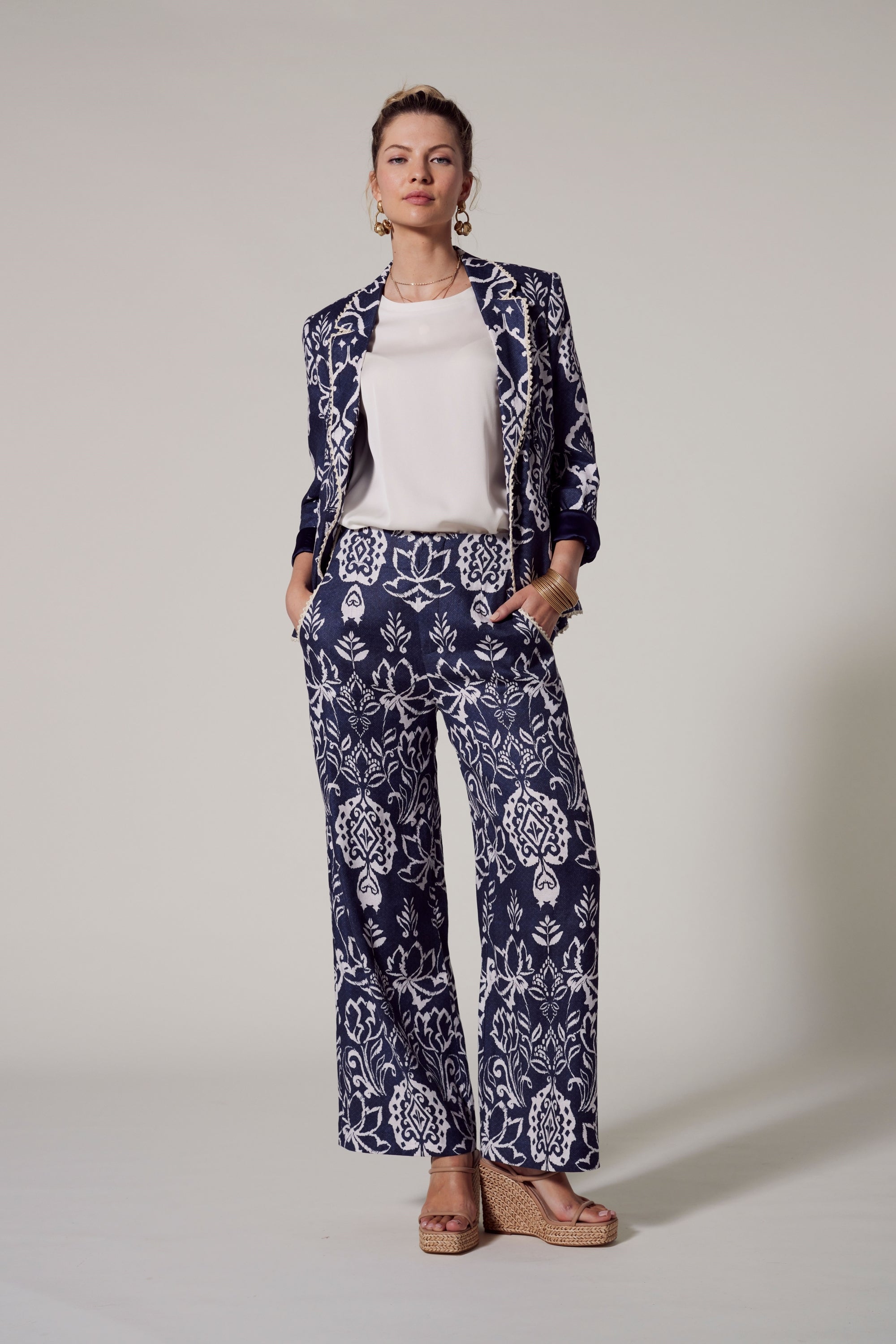 Indulge in the Lucca Jacket by Loobies Story! Featuring tape trim details, a double fastening button, crafted in a stretch linen exclusive print. This style is beautifully tailored, sure to elevate your look.
