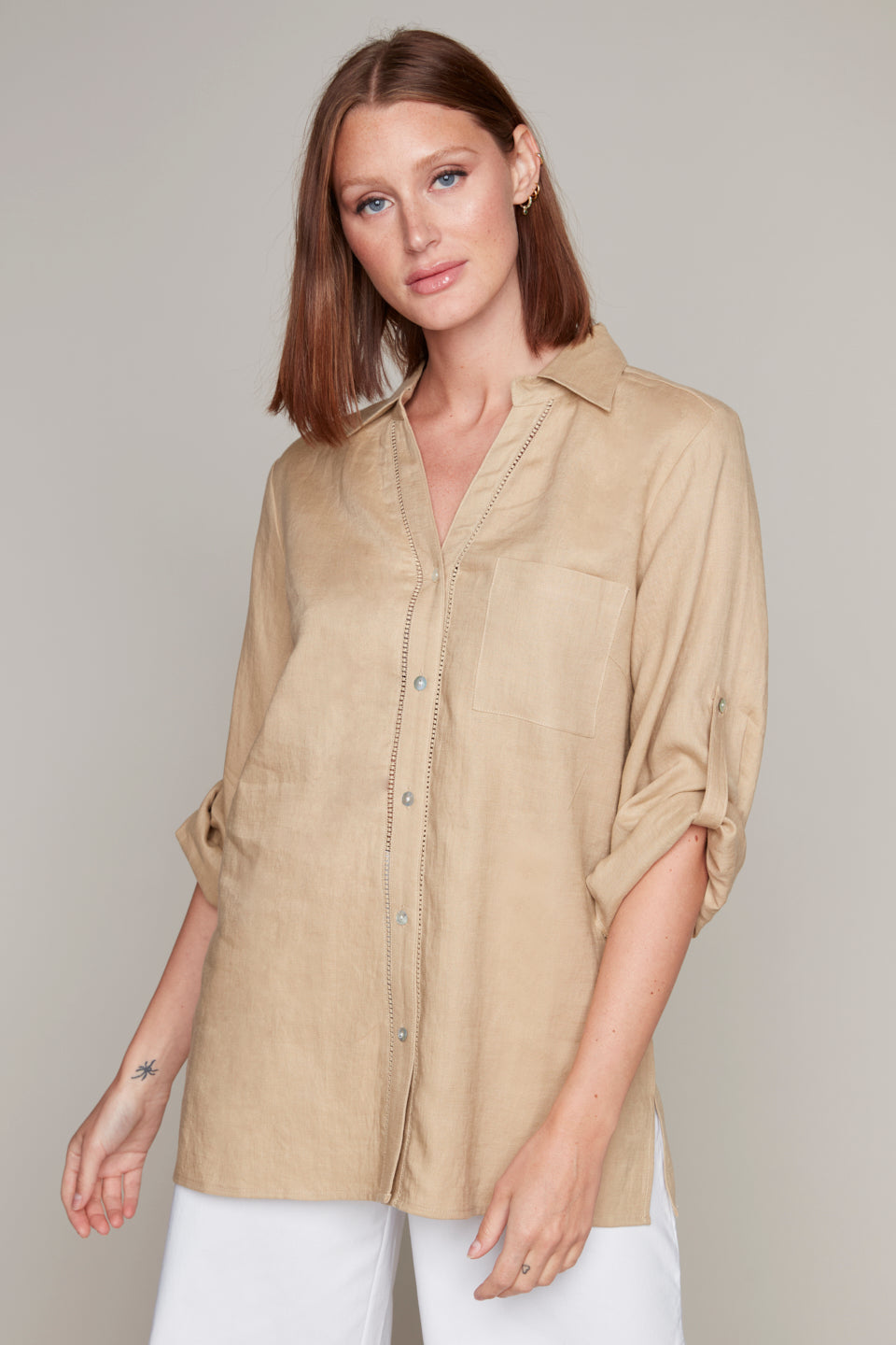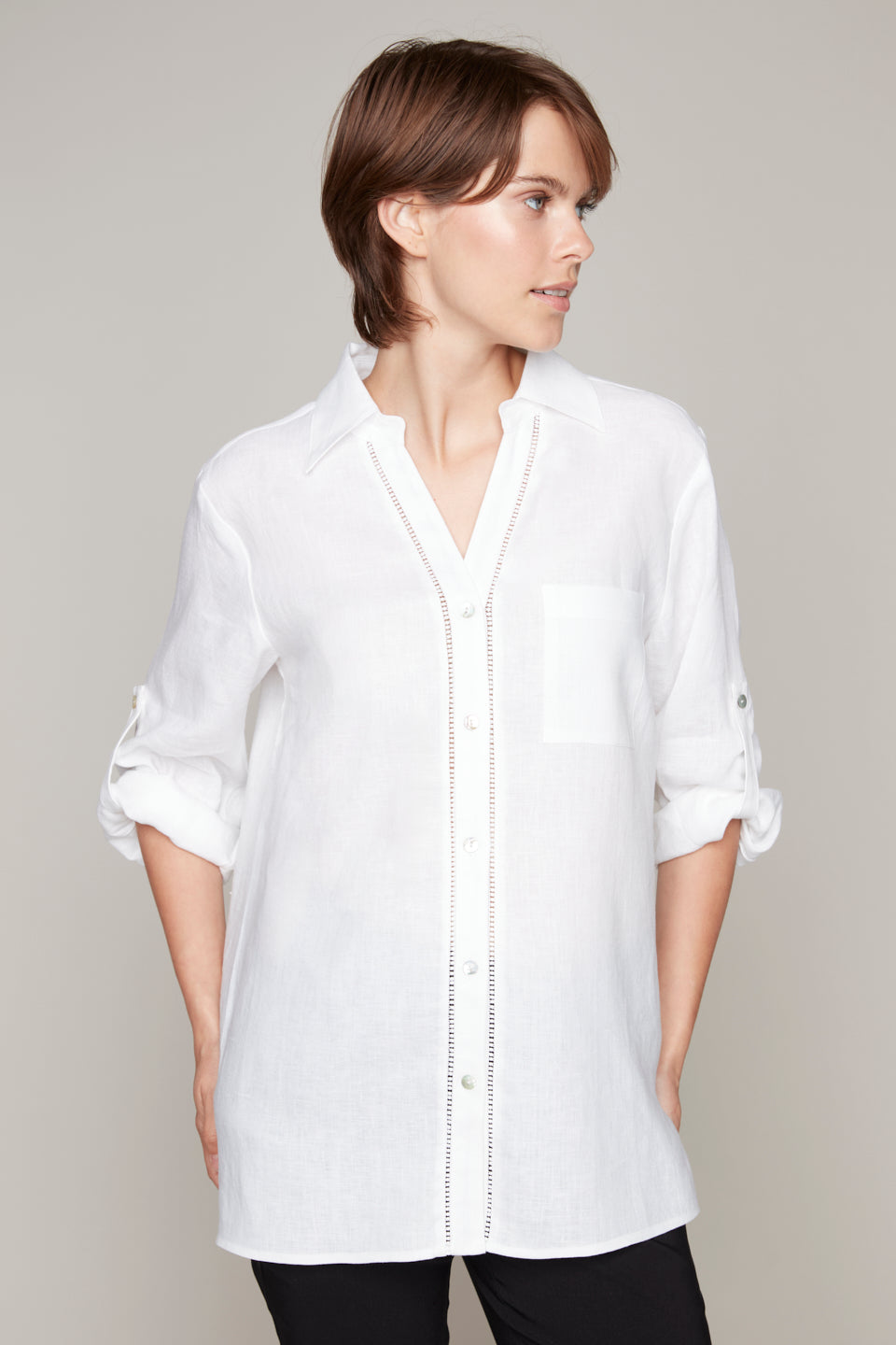 This lightweight shirt combines classic tailoring with soft pintuck detailing for an effortlessly elegant look. Crafted from a breathable linen —ideal for warm-weather days and perfect for dressing up or down.