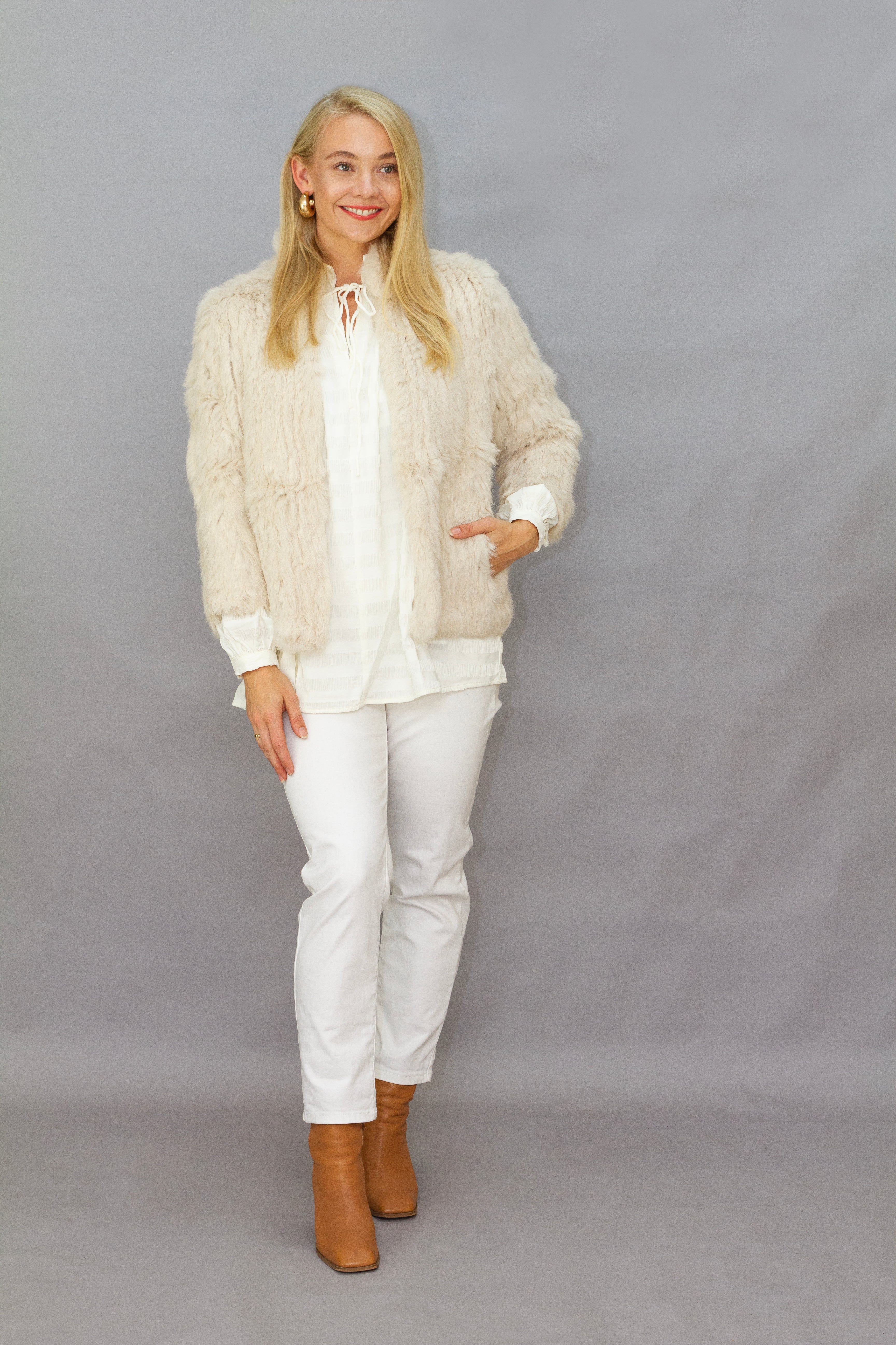 Sumptuous, luxe and fabulously warm, the Miranda Fur Jacket has been exclusively created for Magazine. Crafted from soft ethically farmed rabbit fur, this long sleeve jacket is high through the neck with hook and eye front closure. Offered in four colourways, this versatile style offers warmth on winter's coldest days. Layer over a longline dress, or team with a boho style blouse and jeans.