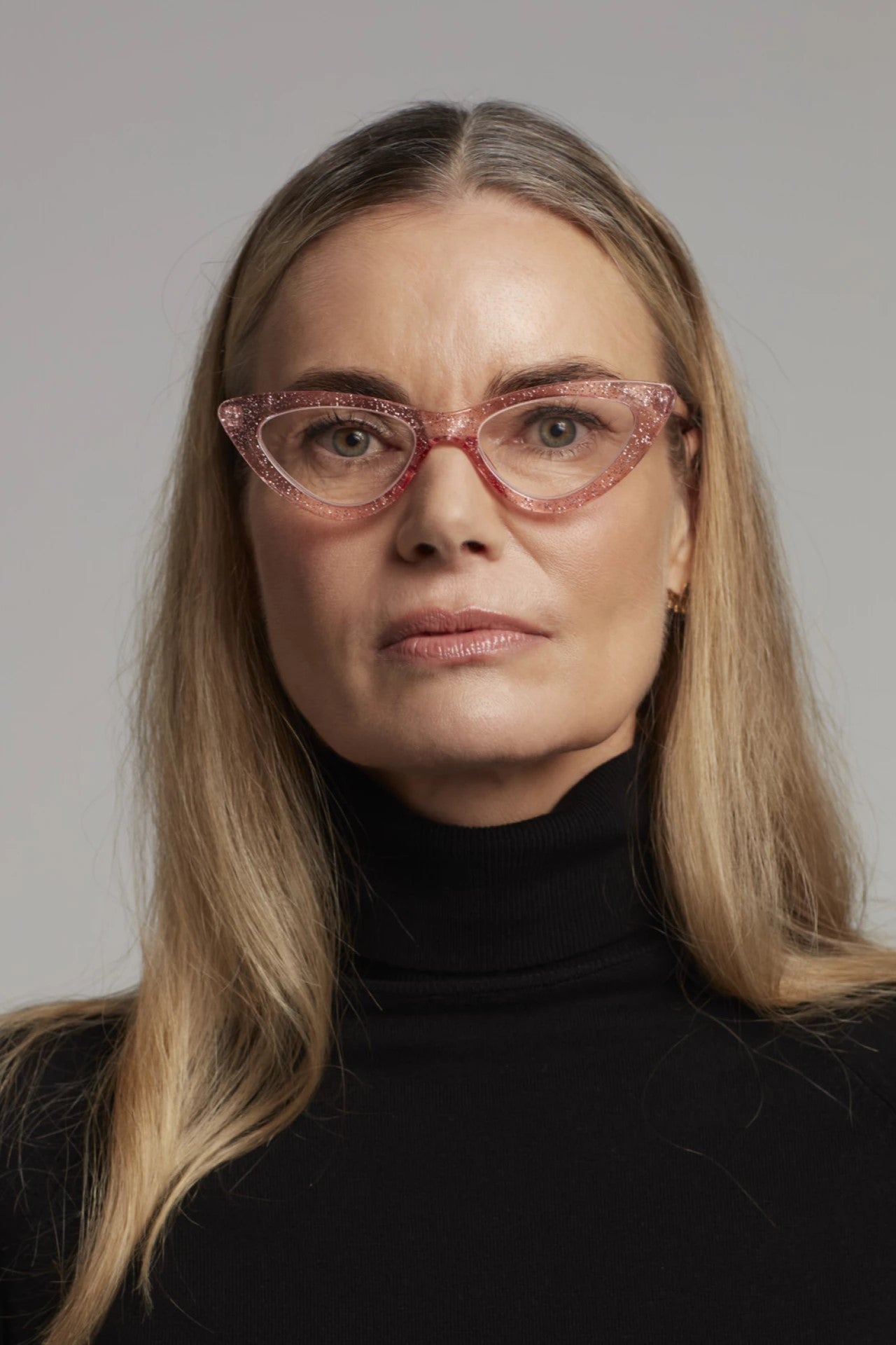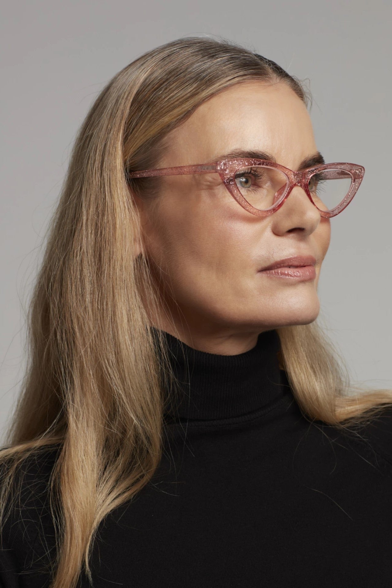 The Okkia Adrianna Reading glasses in Pink Glitter are a modern and charming take on a 50s and 60s inspired design.