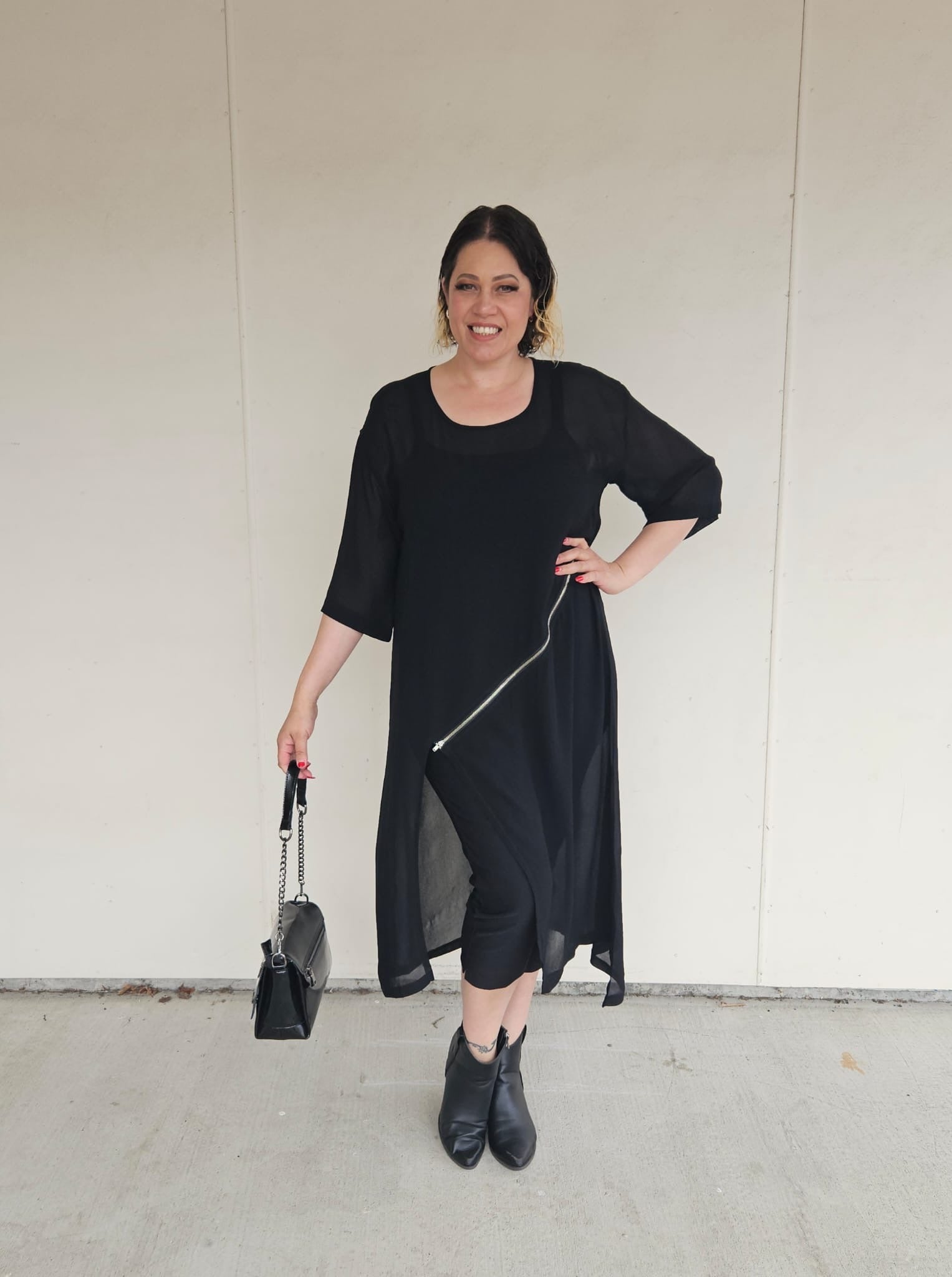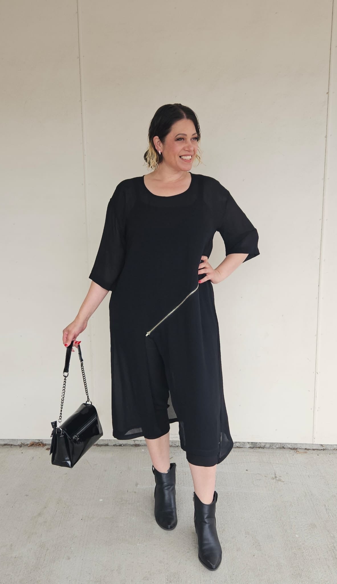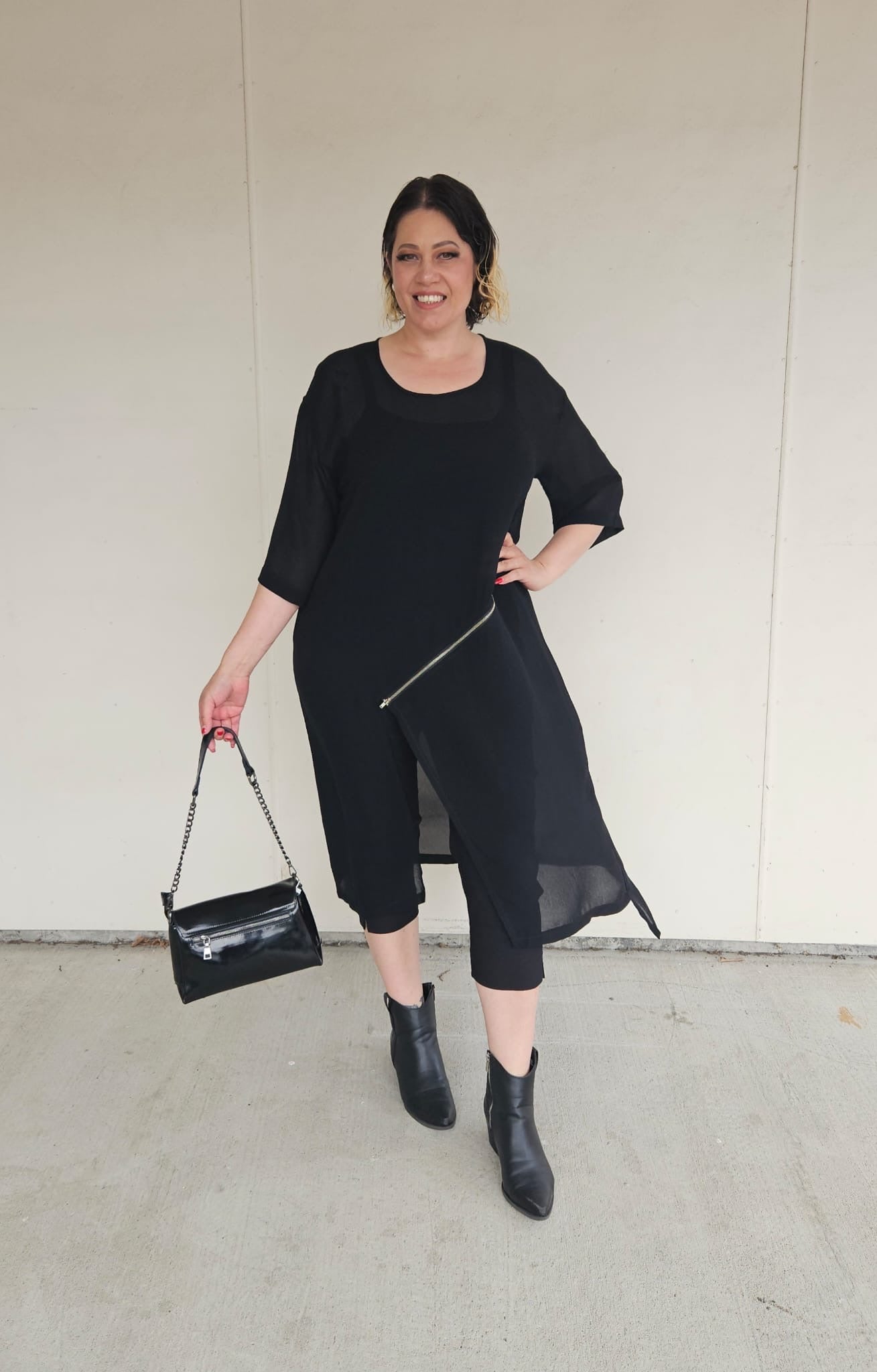 The Roam Zip Tunic by Raven is a modern must-have that combines style and versatility. Featuring an edgy diagonal zip detail, this tunic transforms effortlessly to suit your look. Wear it zipped up for a sleek silhouette with a subtle slit or unzip it to reveal and showcase your outfit underneath. With elbow-length sleeves and a clean, minimalist design in classic Black or Vintage, it’s the perfect piece to layer or wear on its own for a contemporary, chic vibe.