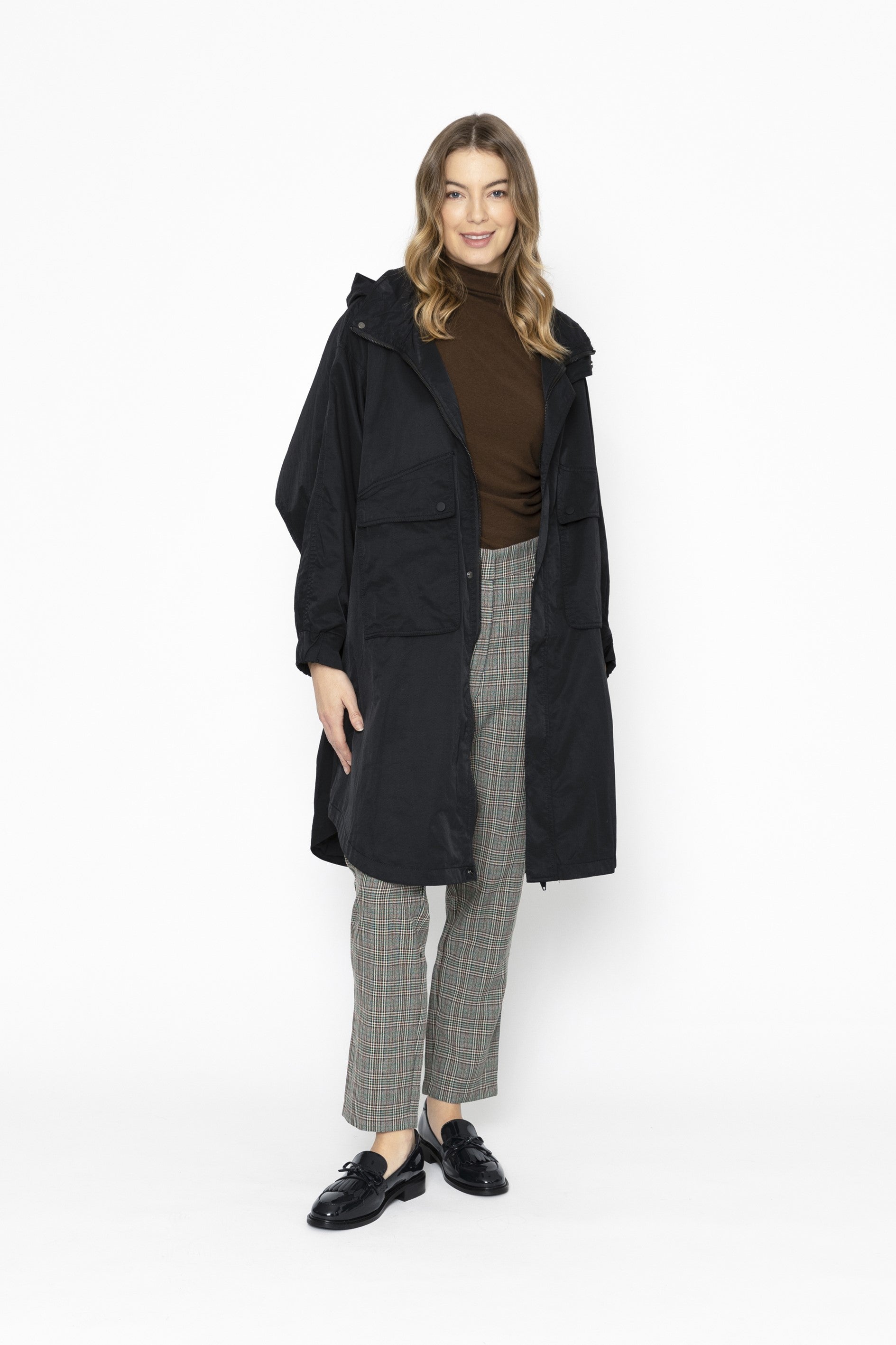 Stay warm and stylish with the Walsh Raincoat by Two by Two. This long parka style coat features a zip and dome button closure, large front pockets for storage, and elasticated cuffs for a comfortable fit. With swing shaping and drawstring back, this style is both practical and flattering on the body!