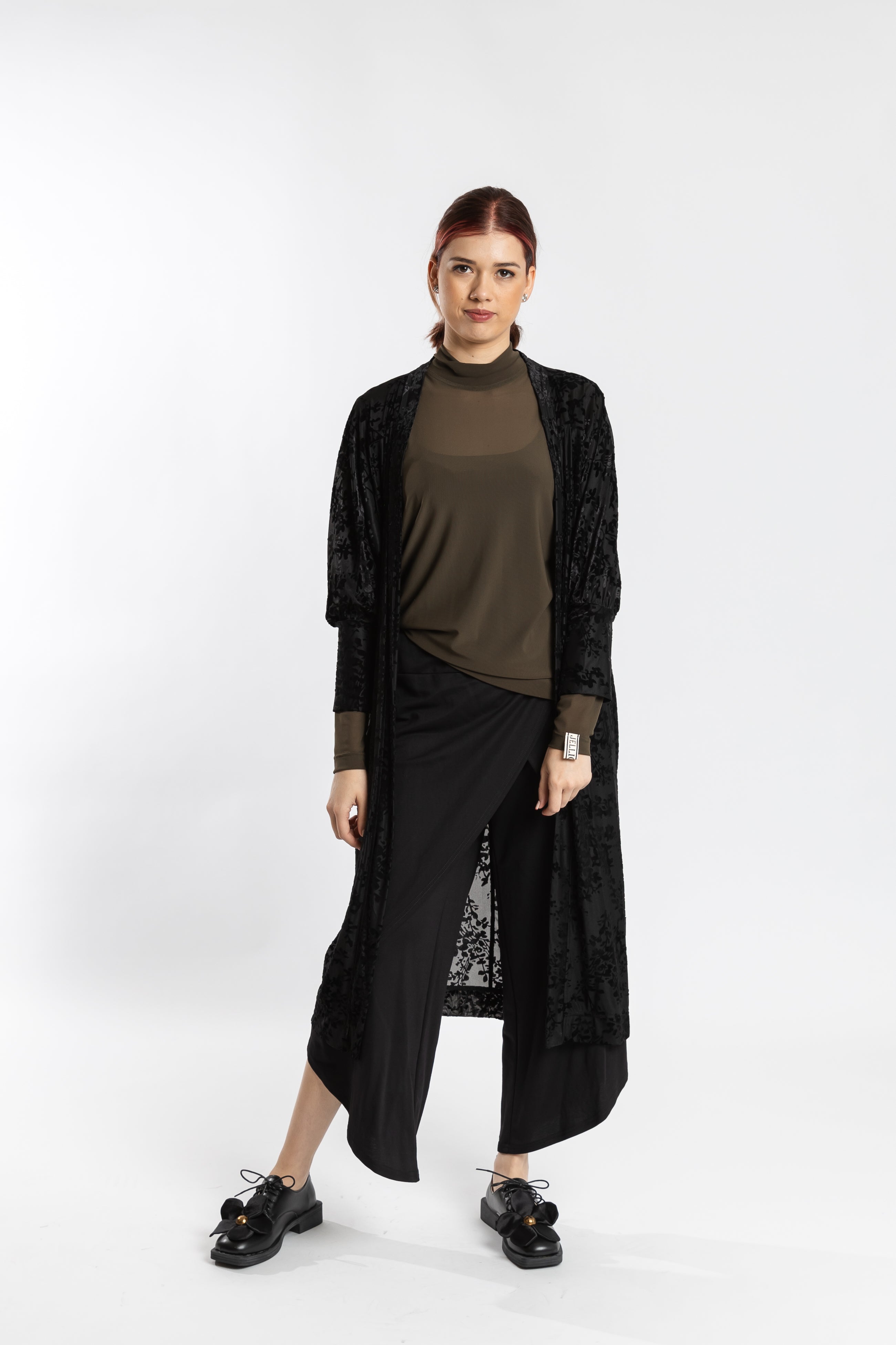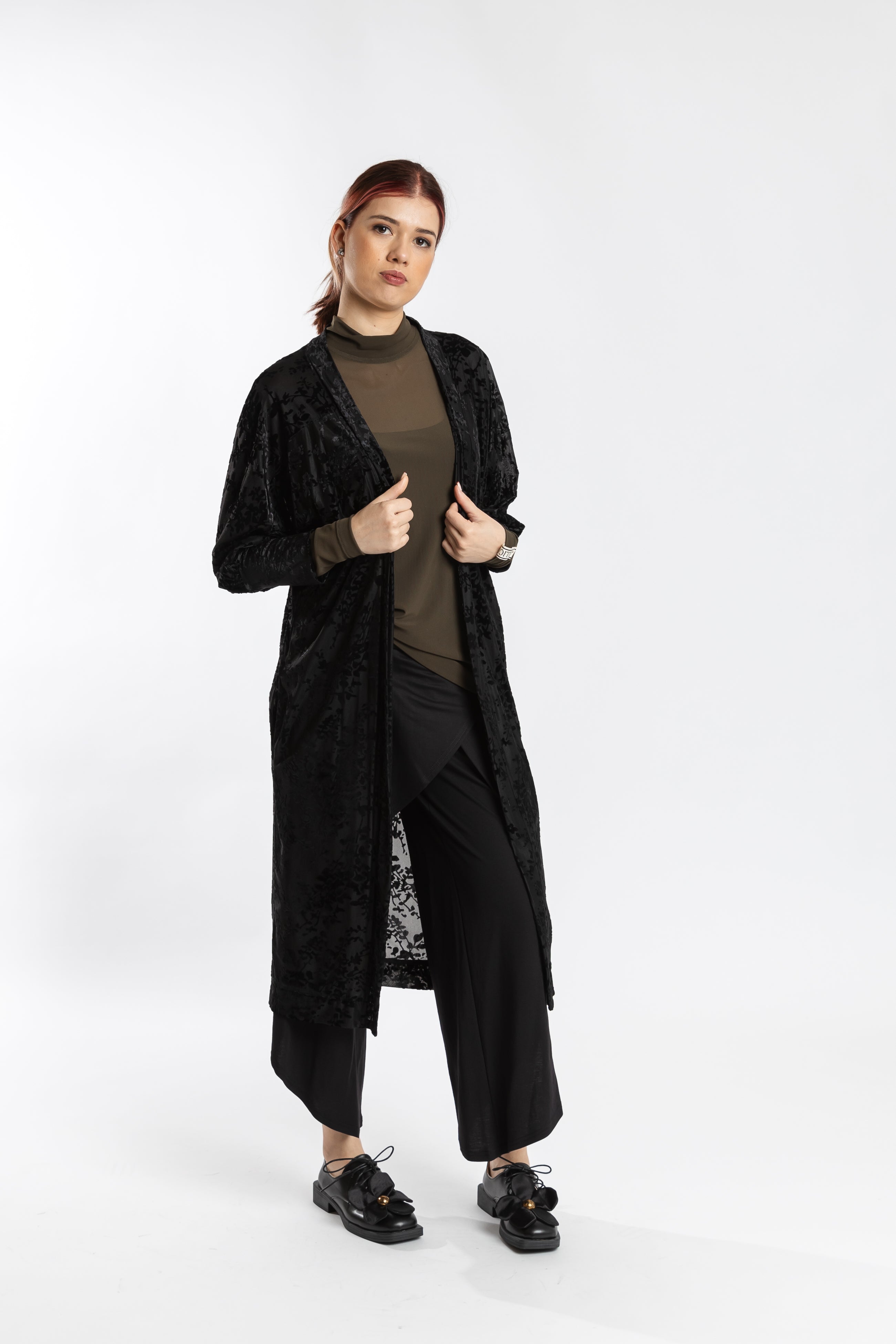 Cut in a delicate floral burnout fabric, Jellicoe’s Poppy Cardi works the double shift from work to play! This longline edge to edge design features a fitted cuff. Dress up with a sleeveless dress for work, or with denim and a tee for play, this is a style you’ll wear again and again!