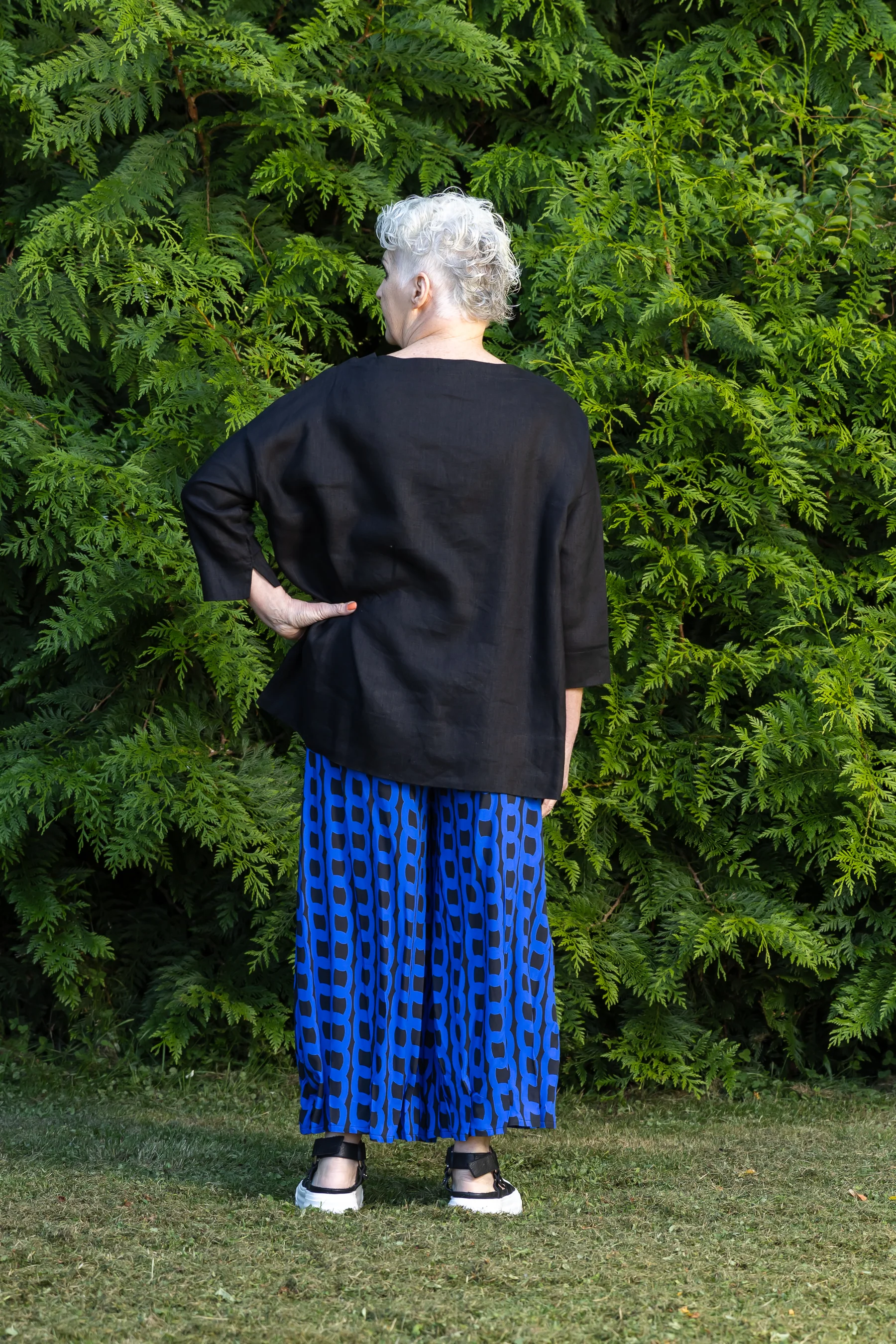 Deeanne Hobb's Slate Top is a flattering high boat neckline with boxy 3/4 sleeves, offering a perfect blend of comfort and style. The step hemline adds a contemporary flair that can be dressed up or down for any occasion. Embrace versatility with this effortless addition to your collection.
