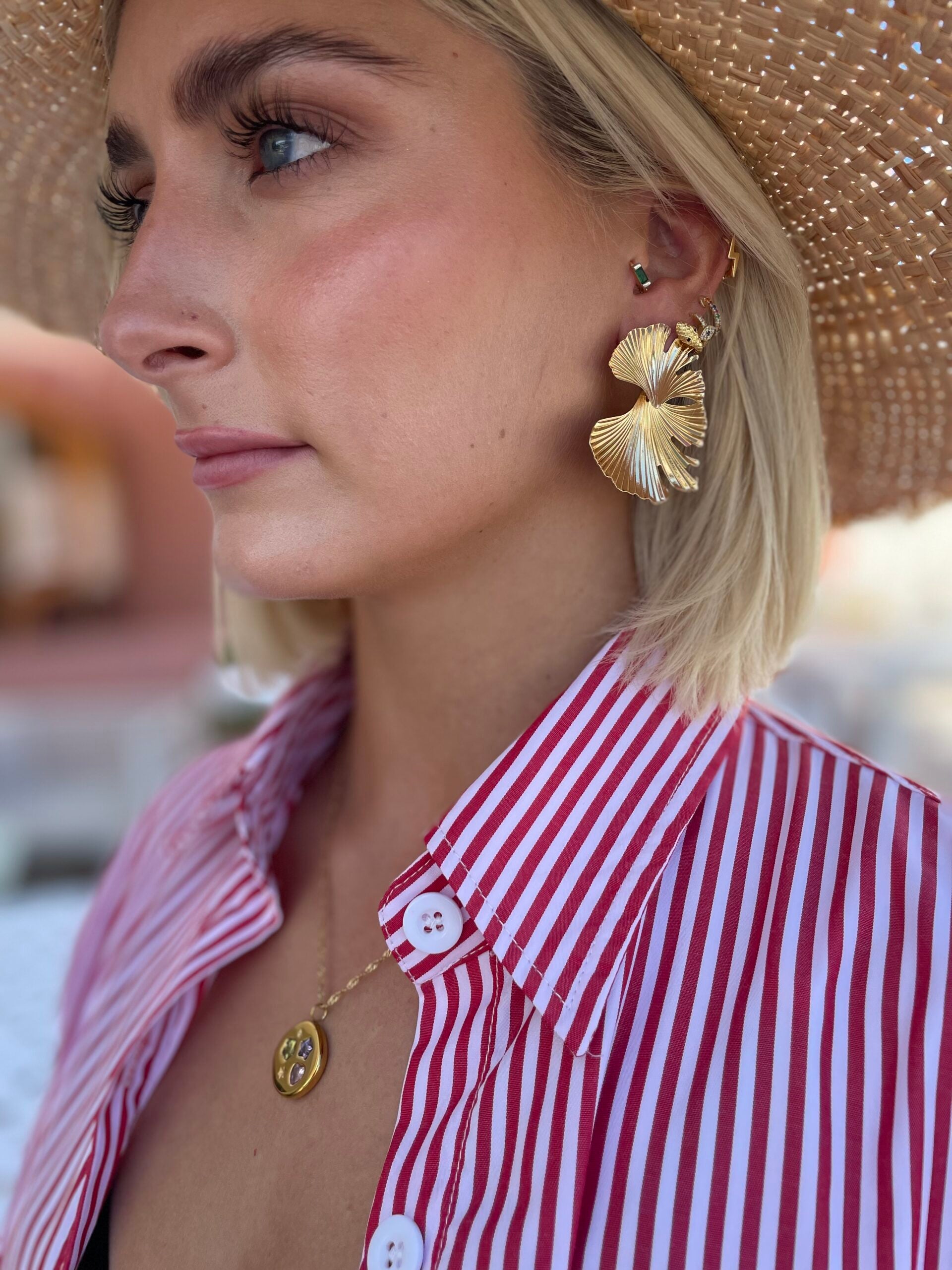 Make the Me The Label's Gold Leaf Earrings your new go to earring. Light, classic, two leaf detailed piece great for any occasion.