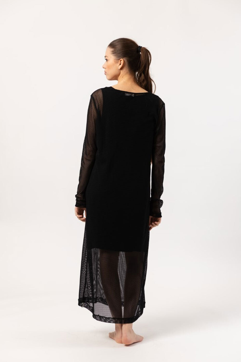 Perfect for layering, the Long Mesh Dress is ideal to create a modern and edgy look! Cut in a soft and stretchy open weave mesh, this scoop neck style adds a fabulous textural component to any outfit.