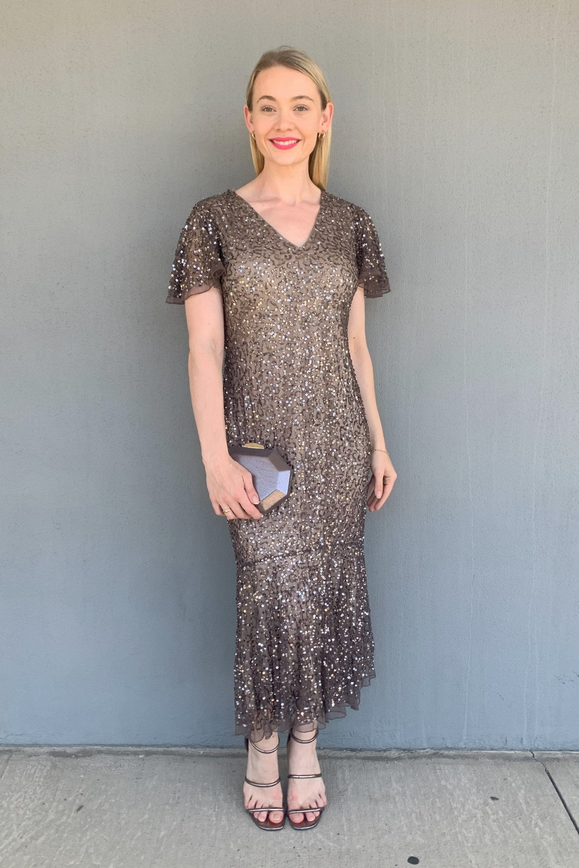 The Jesse Harper Gold Glitter Dress is simply elegant! This style is dazzling and chic with its simple and flattering cut, adorned in lavish sequins. Featuring a v-neckline, and soft pleating, this style can be worn in so many ways for any special occasion.