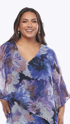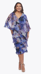 Layla Jones - LJ0571 V Neck Floral Layered Cape Dress