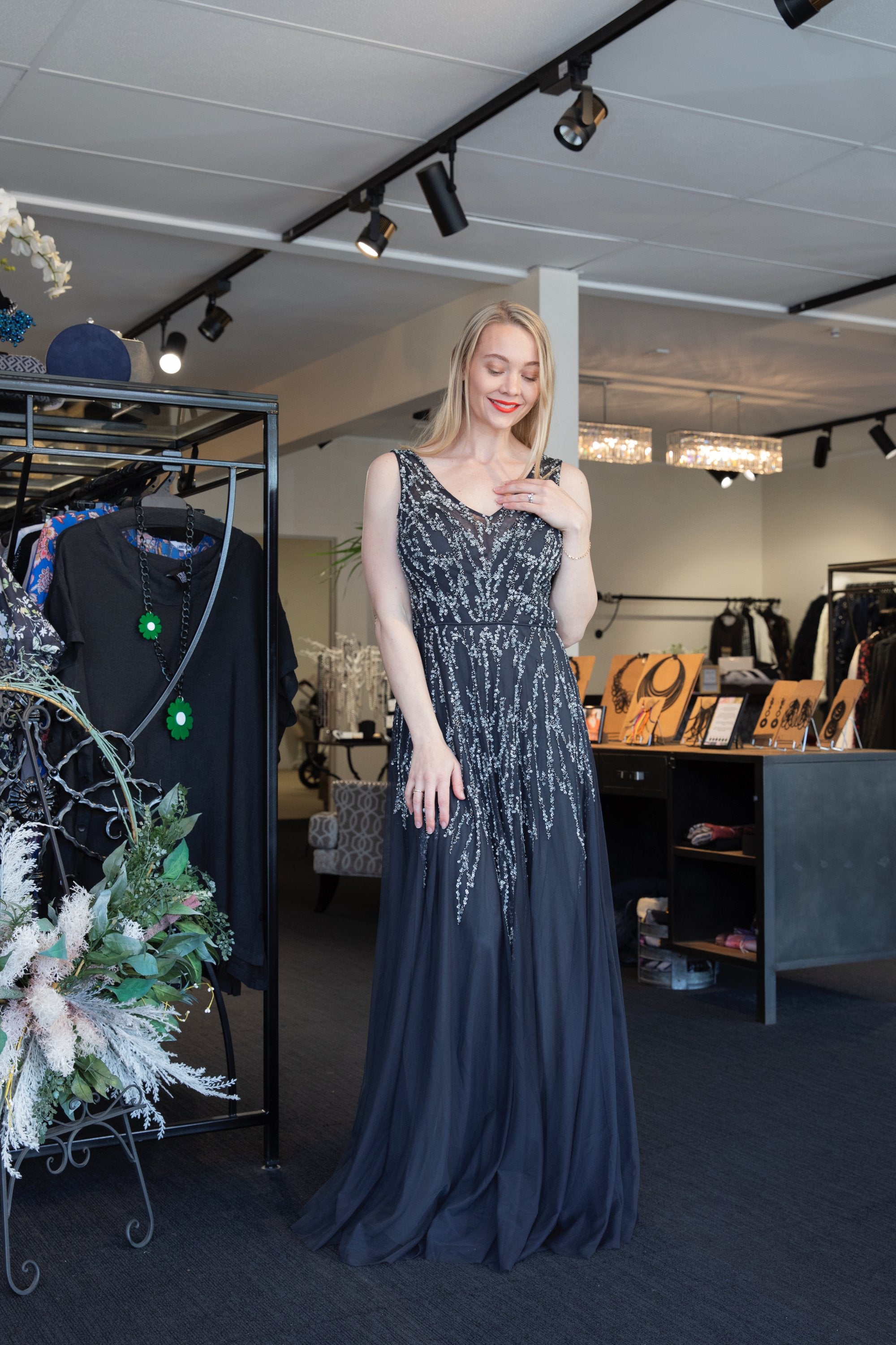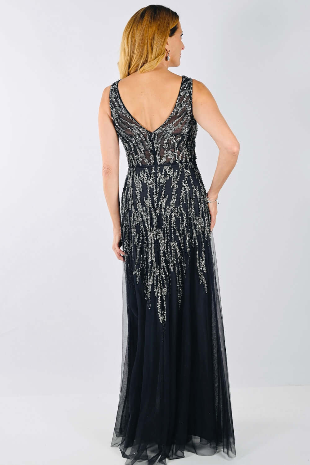 Every once in a while, there comes a style to take your breath away - and Frank Lyman’s Beaded Ball Gown is just that style! Cut in a soft and feminine mesh, delicate beads are inlaid in a flattering vertical design. With a dramatic Vee front and back, a satin finish empire waist adds to the princess feel of this gorgeous floor length design. Fully lined and so effortlessly wearable cup inserts at the bust give additional support.