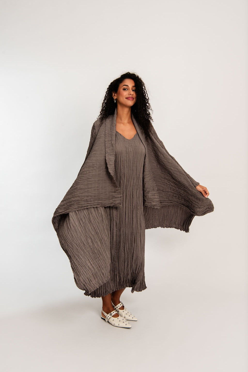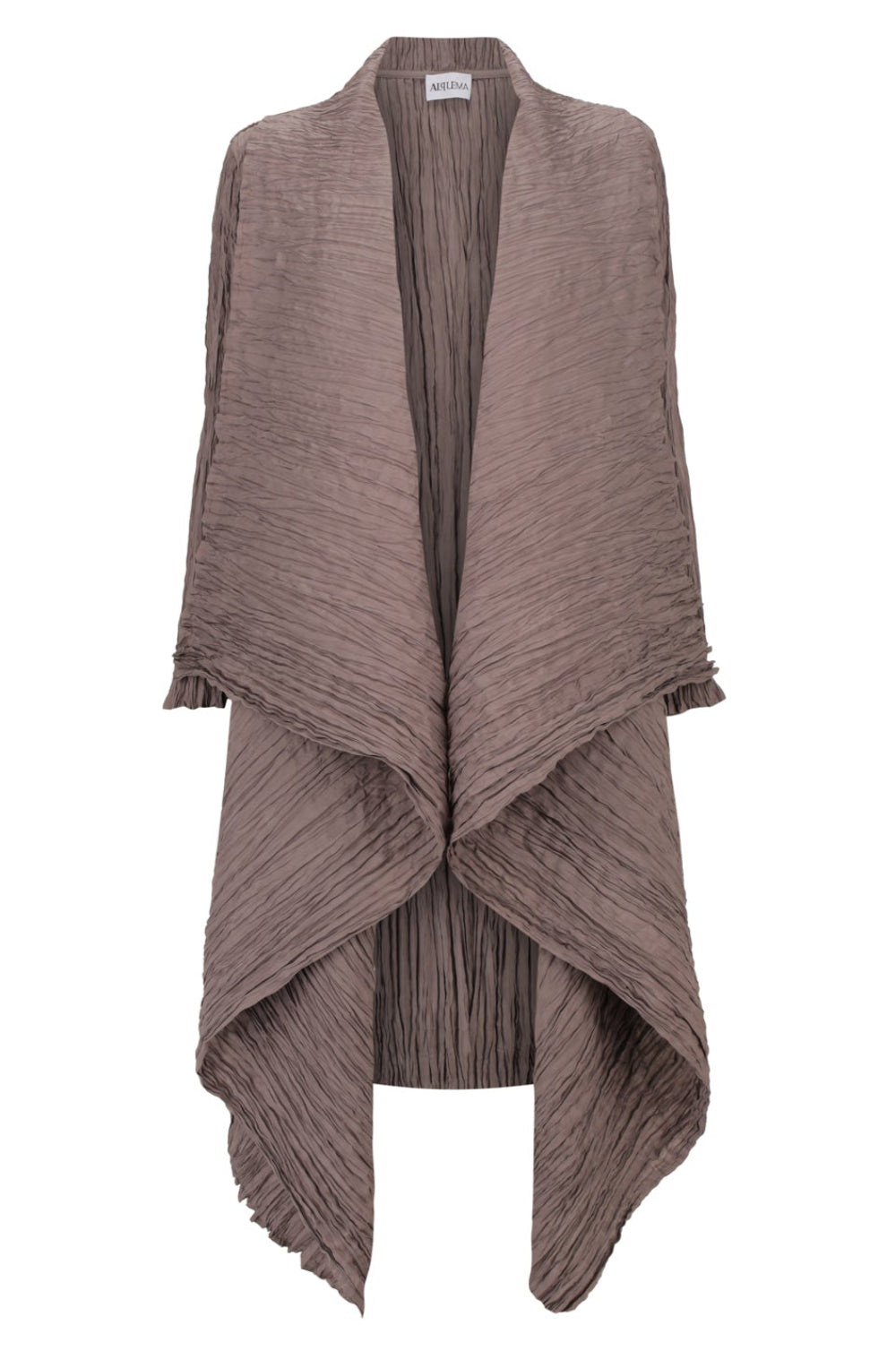 The Havana Coat from Alquema is a study in texture and tone, crafted from 100% soft reverse satin. Its lightweight handle is elevated by a gentle tonal ombré that moves seamlessly through the palette. An Alquema signature, the waterfall collar frames the neckline, while long sleeves and a midi length offer graceful coverage. Finished with rich pleating and an elegant drape, it brings drama to every outfit! Pair with the matching Havana Dress.