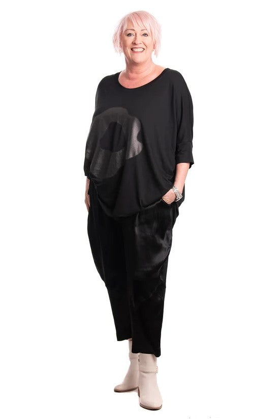 The Raven Divide Pant will be on high rotation in your wardrobe. Featuring cocoon shaping through the leg, an elasticated waist, and roomy pockets these are super flattering on curvy girls. Made in a luxurious matt satin viscose that will dress up an outfit or add a textural element to all-black dressing.