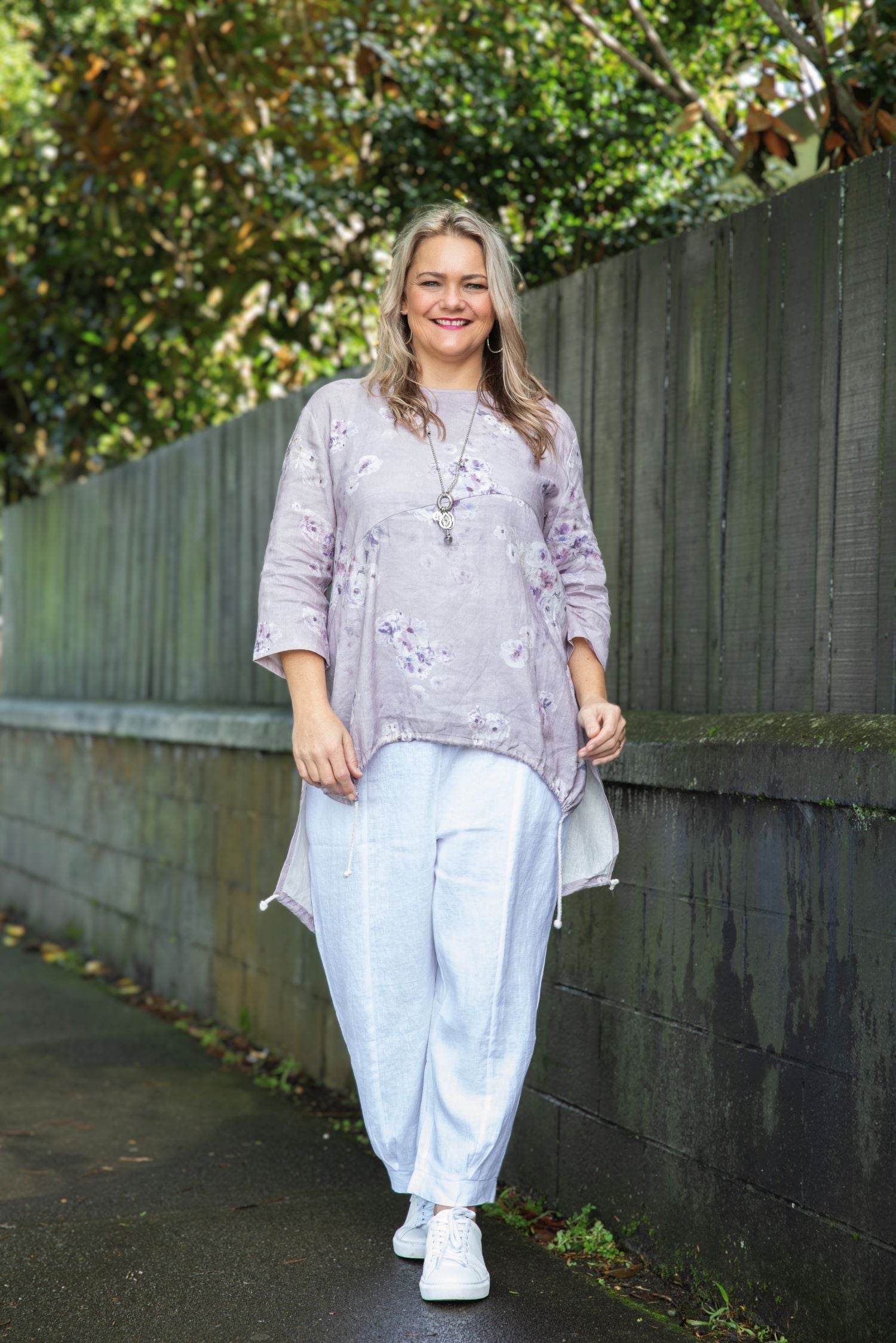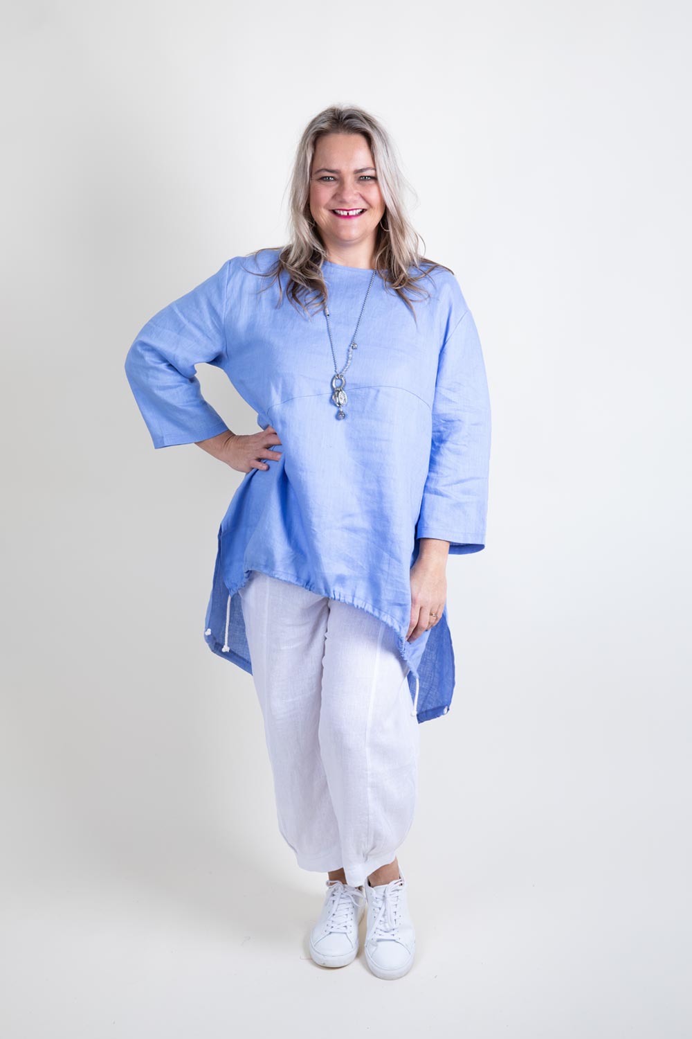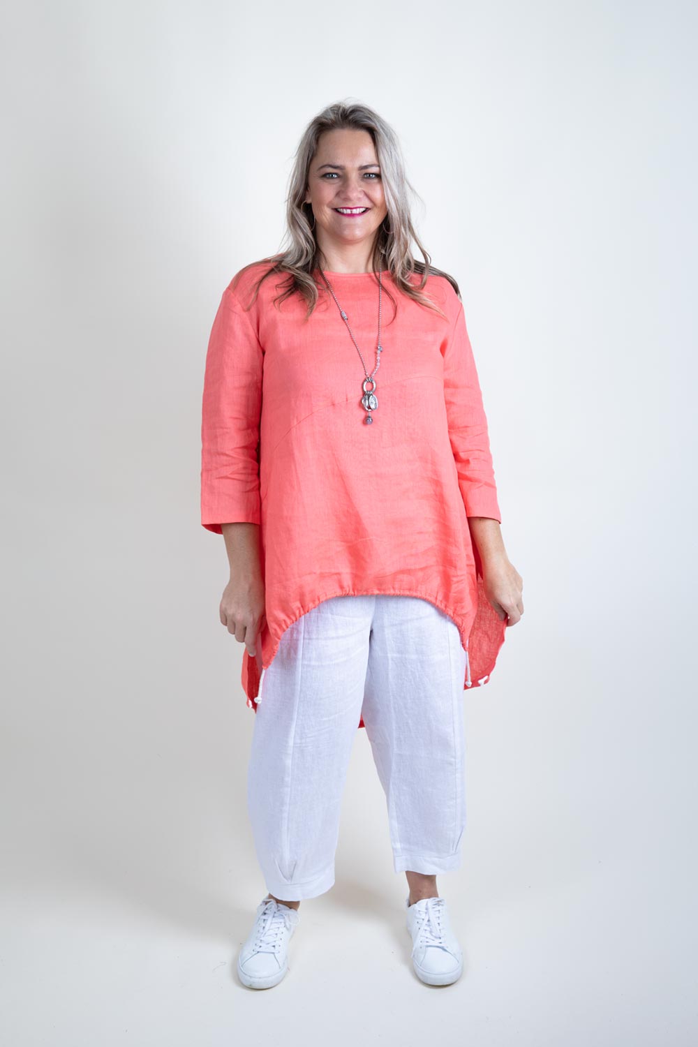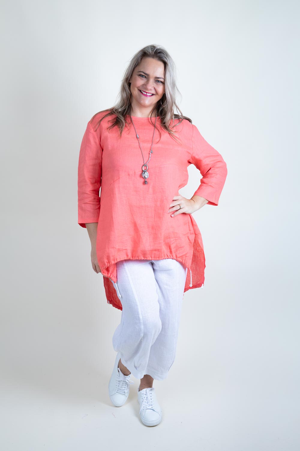 Magazine’s Rosemary Angle Tunic ready to add to your summer wardrobe! Cut in 100 percent linen, this longline tunic features angled empire line shaping and an exaggerated hi Lo hem with drawstring detail that works perfectly with Magazine’s Helen Cuff Pants.