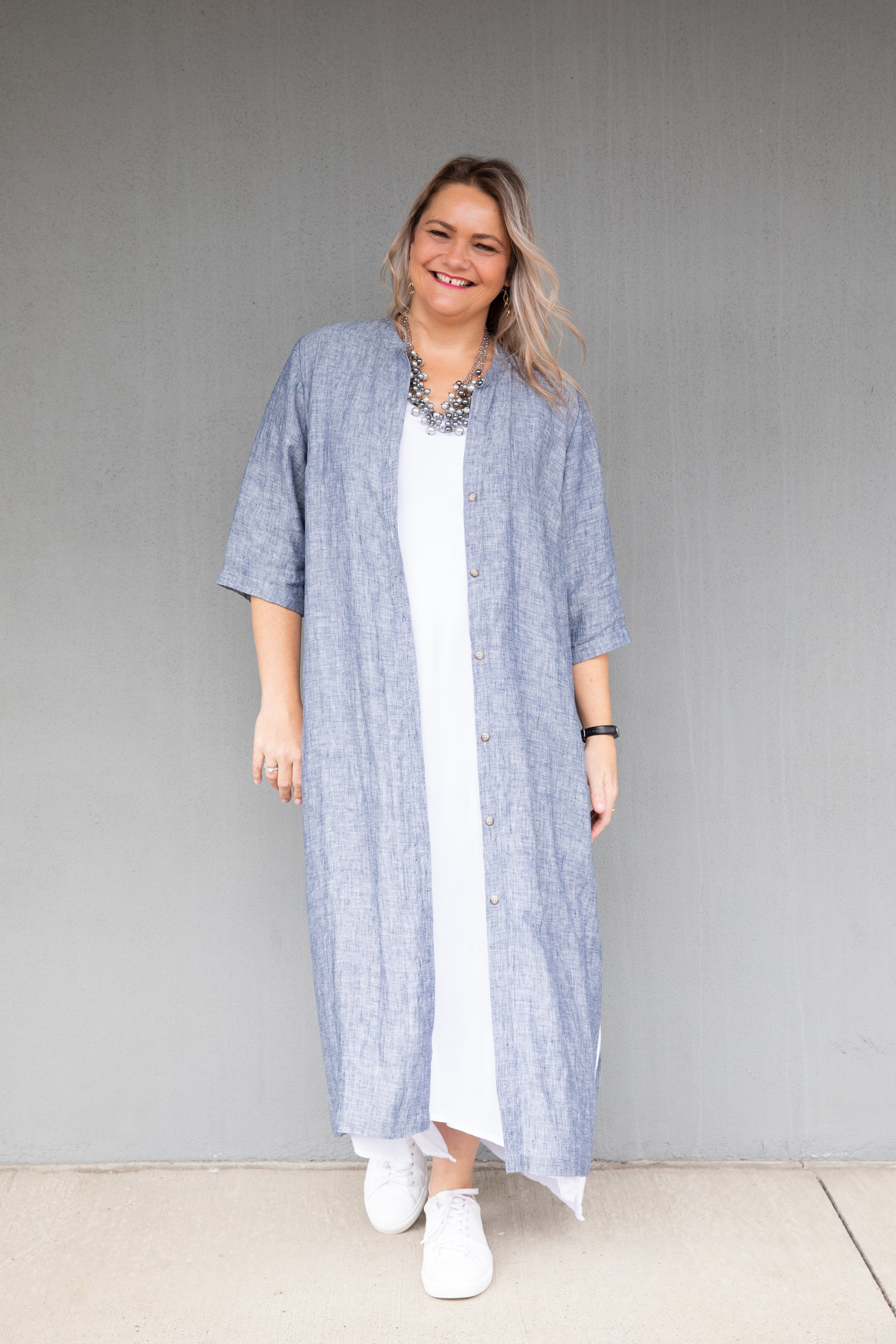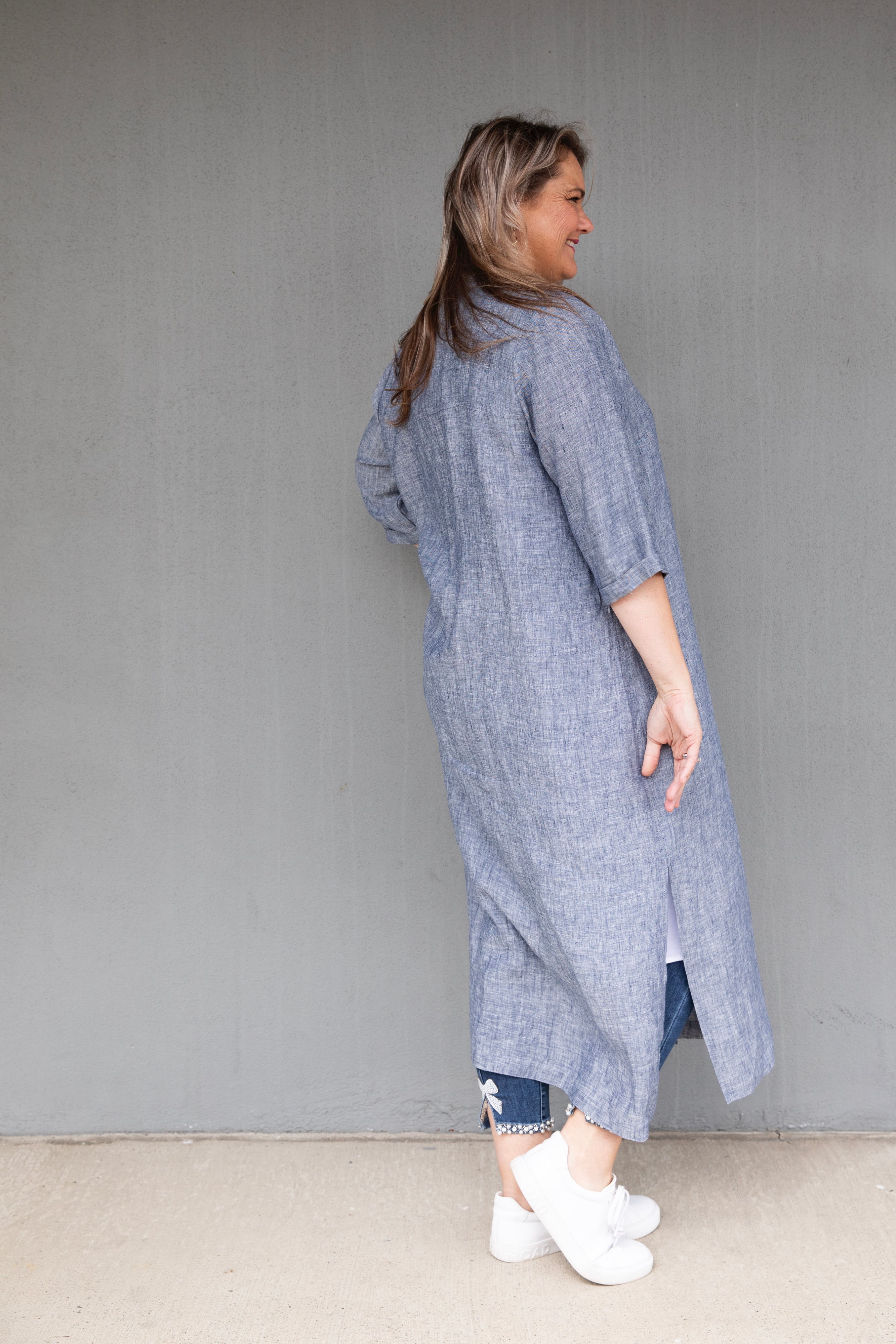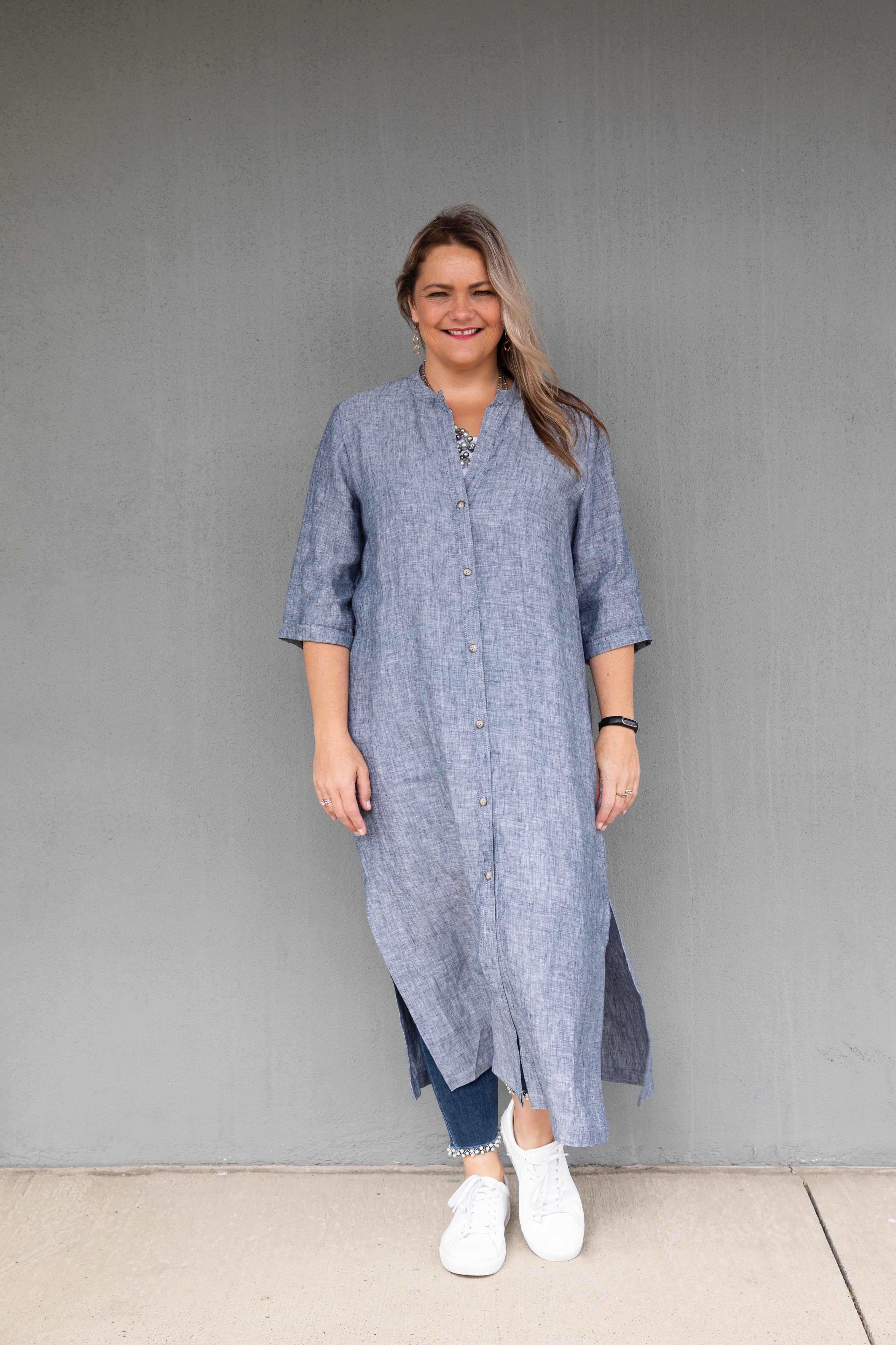 Proudly made in New Zealand, and crafted in soft handle textured linen, Cashews Linen Maxi Shirt is coolly sophisticated. With a mandarin collar and deep side splits, this elegant design can be worn buttoned as a shirt dress, or open with as the ideal sleeve cover option for work or play.