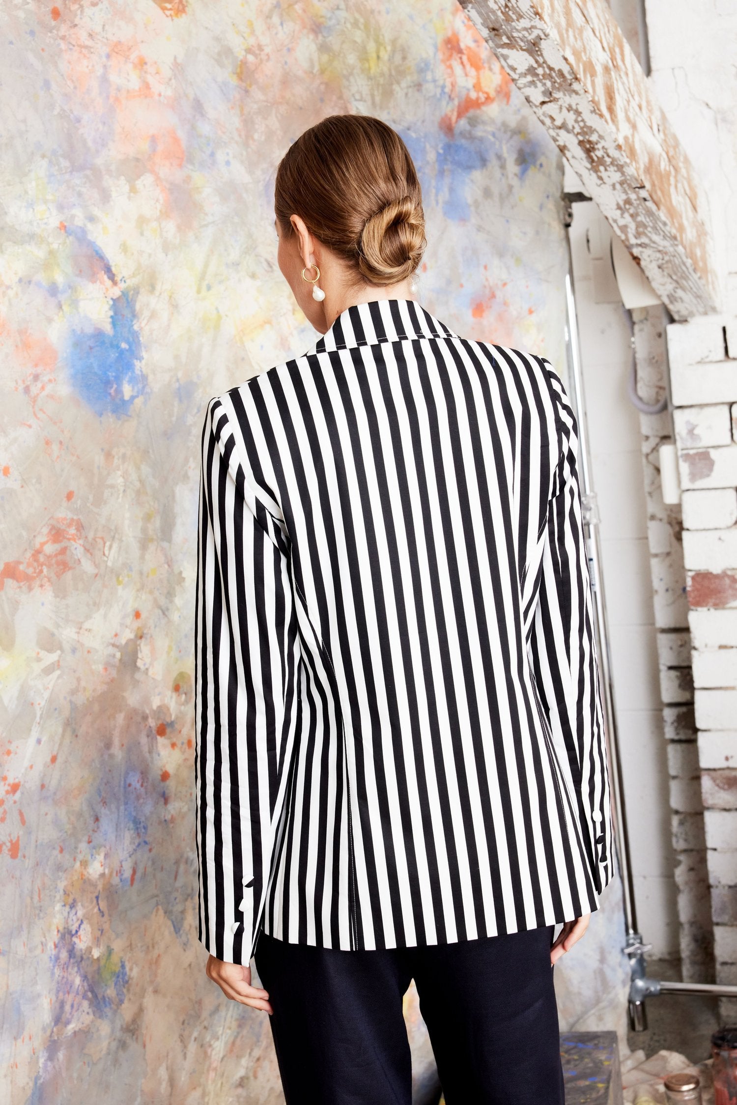 Expertly finished and exquisitely tailored, stand out in style in Kamare’s Vi Jacket. Cut in a striking black and white stripe polished cotton, or a gorgeous Spring Floral Linen, this classic blazer is fully lined in soft cotton with covered buttons on the cuff and to fasten. Perfect for work or the races when worn with a simple shirt dress, we also love this teamed with jeans on the weekend!