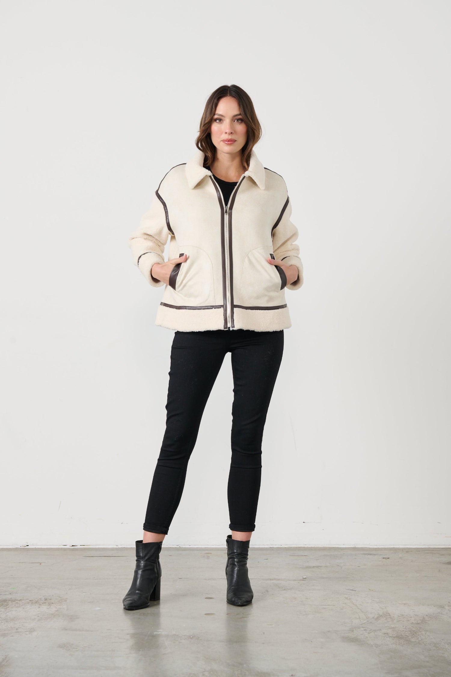 Caju - CZ962 Faux Suede and Sherpa Jacket