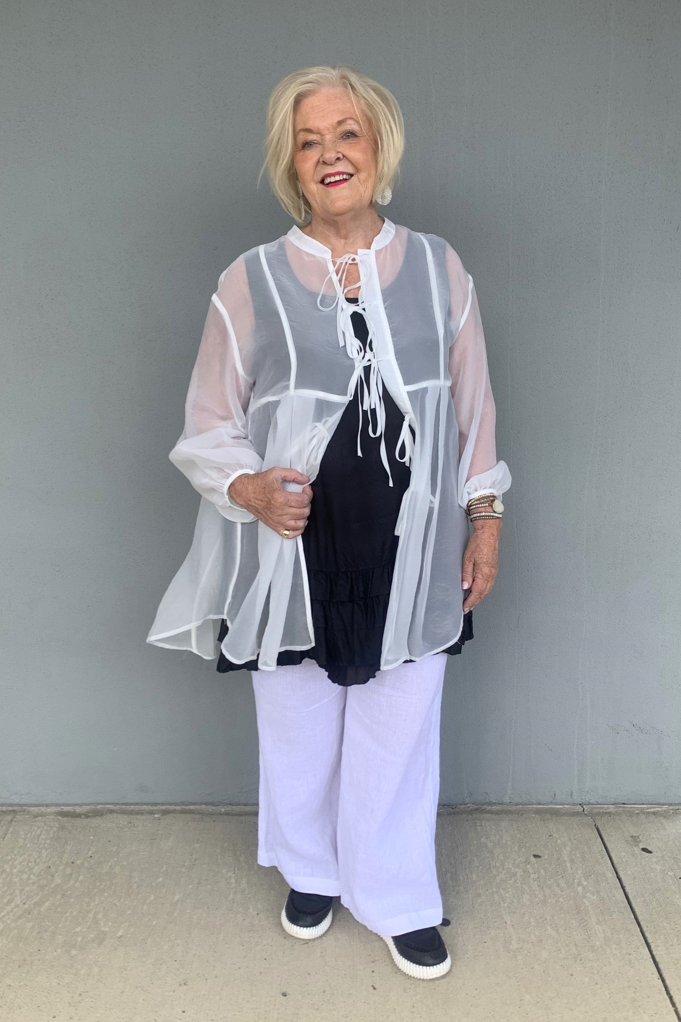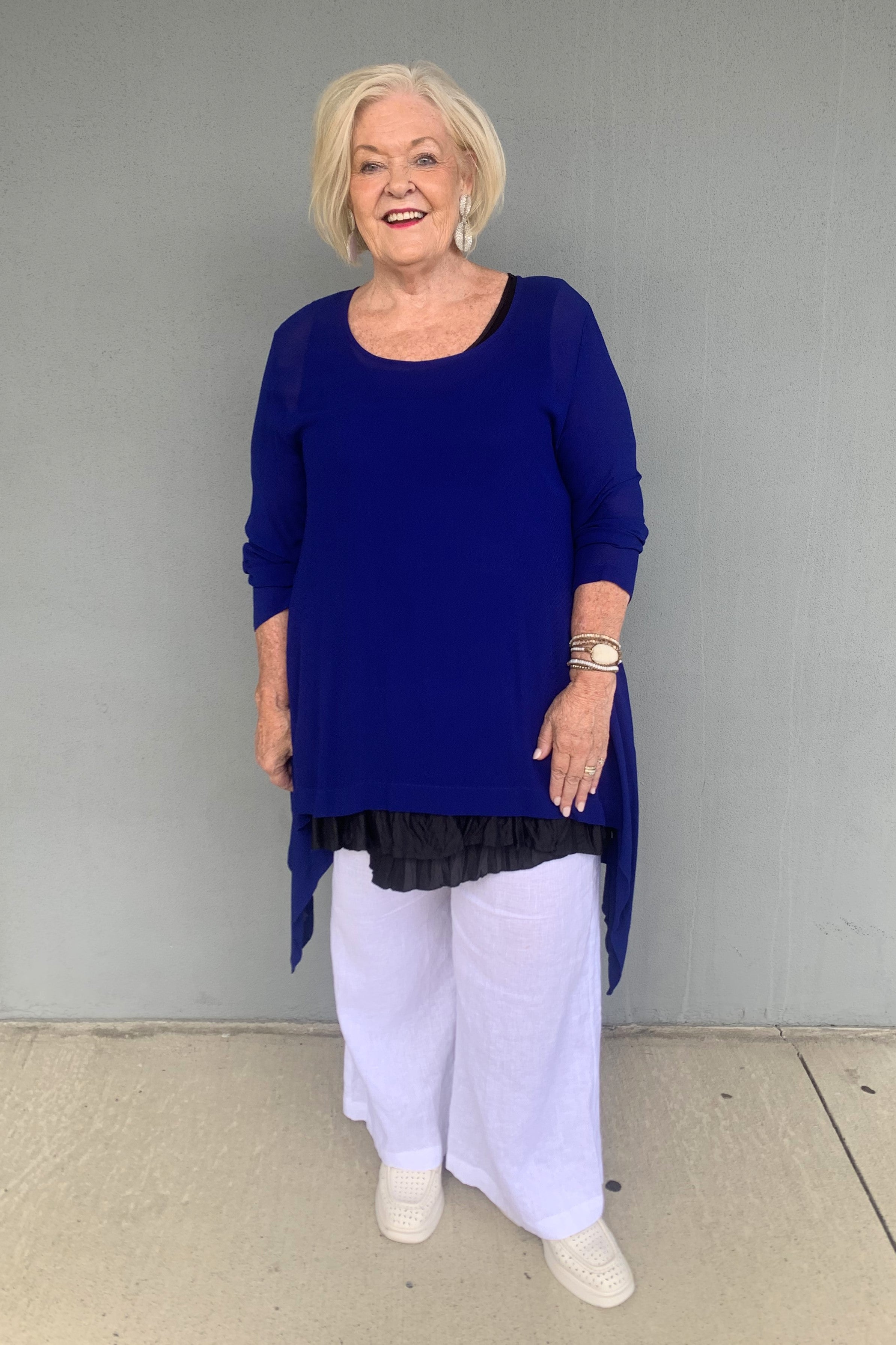 The Niovara Claire Frill Top is a fun layering piece to add interest to your outfit. This cami style top features 3 tiered frills at the hem to add volume and texture, perfect to wear under a high-low hem or cover-up.