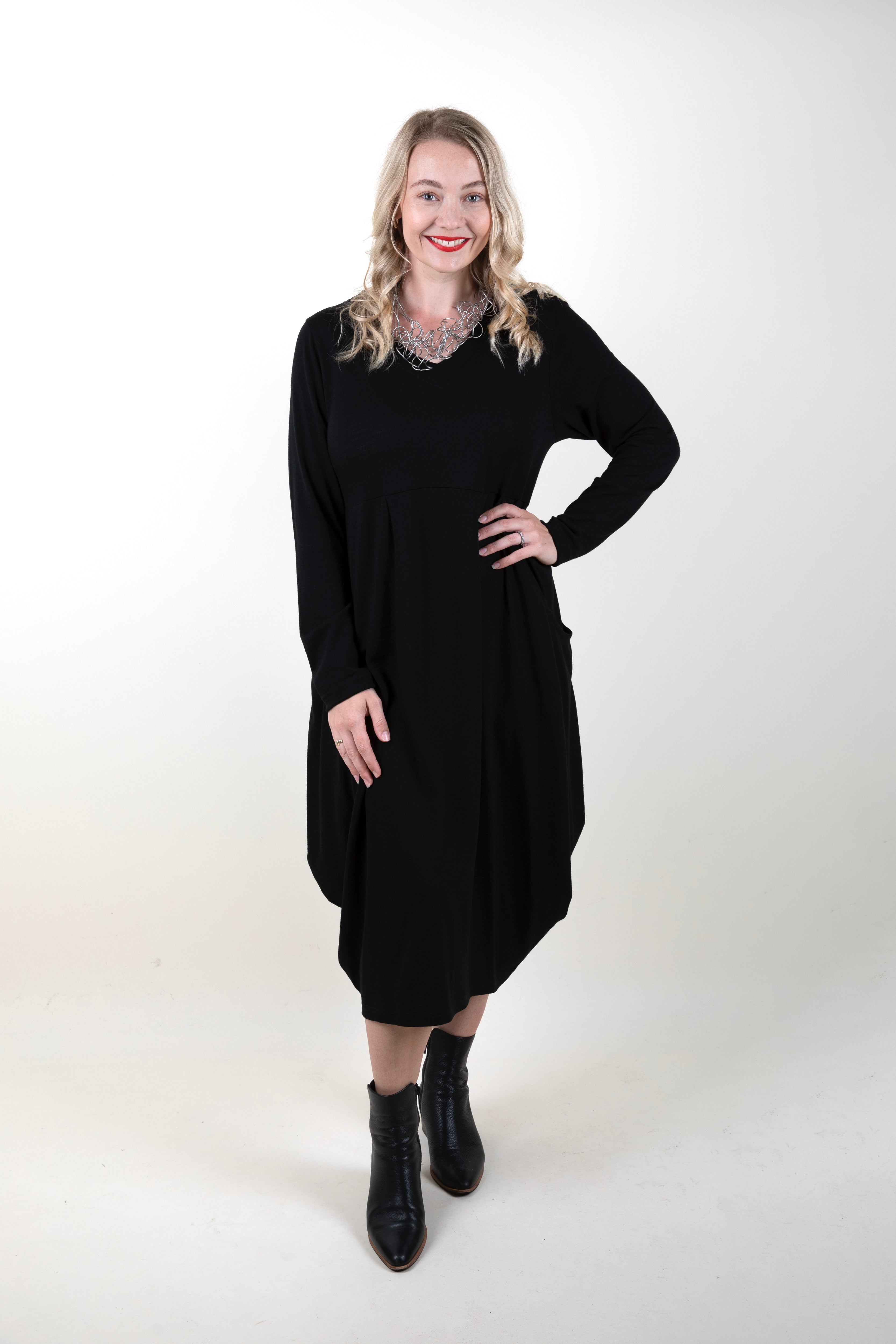 Proudly made in New Zealand, the ever popular Carly Dress by Bittermoon is cut in a soft and stretchy merino that is so effortless to wear! It's fitted through the bodice, before softly cocooning over hips and tummy then finishing just below the knee, this style looks set to be another best seller from Bittermoon! Team with a black blazer and boot for work, or a white sneaker and denim jacket for the weekend - this is a versatile piece you'll wear again and again!