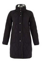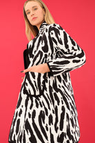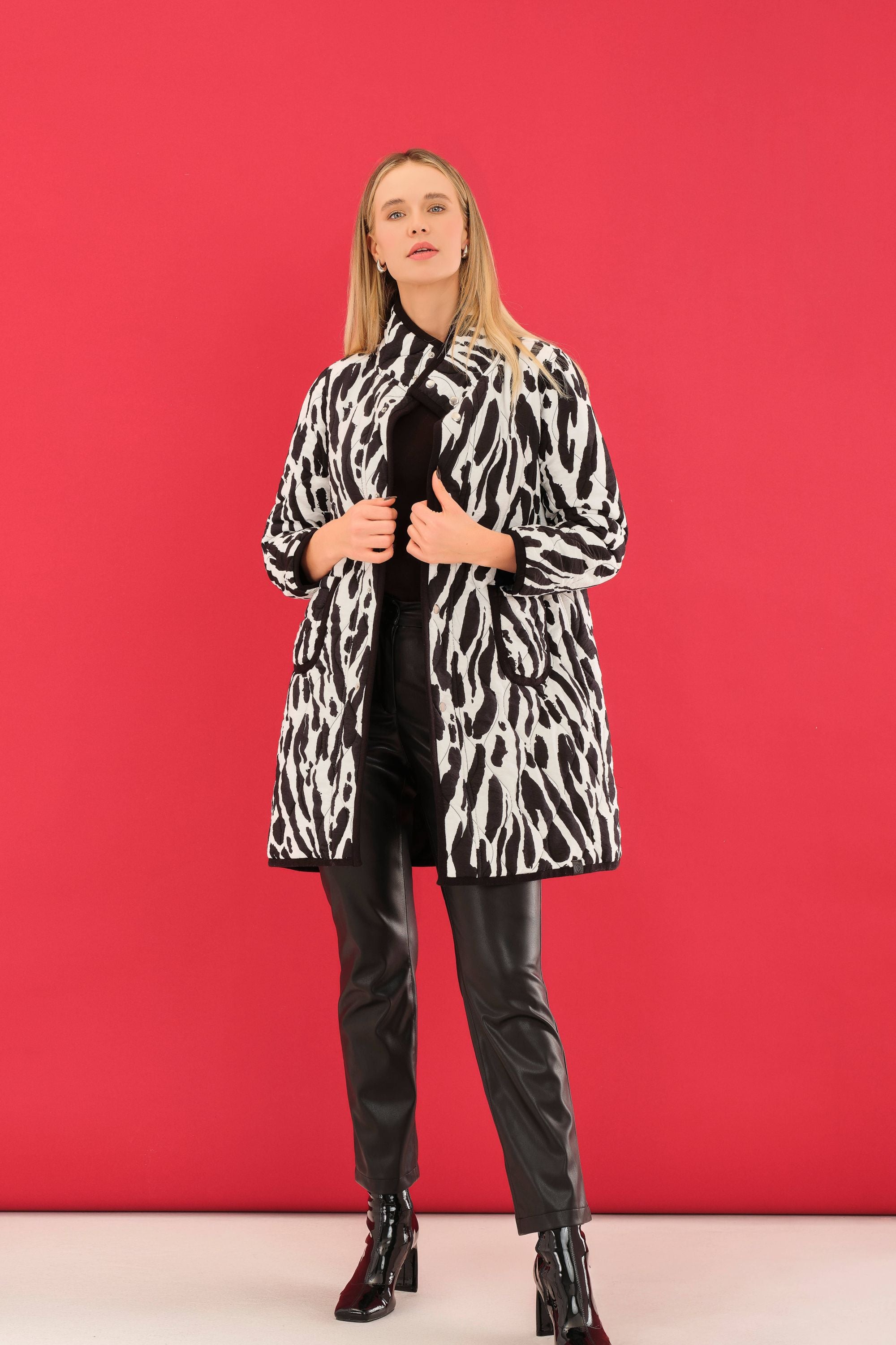 Meet the Dolcezza Woven Coat, a standout print quilted jacket that blends bold personality with everyday practicality. Cut in a regular fit and falling to a flattering thigh length, this urban print coat for women brings a confident edge to your casual wardrobe and layers beautifully over denim, knitwear, or tailored separates. The stand collar frames the neckline with a modern touch, and the combination of button and zip fastening keeps things functional without compromising on style. Finished with pockets for daily essentials, this is outerwear that feels as good as it looks! And did we mention it is reversible - wear it as the striking Black and White pattern, or as all black! We love the versatility of this style.