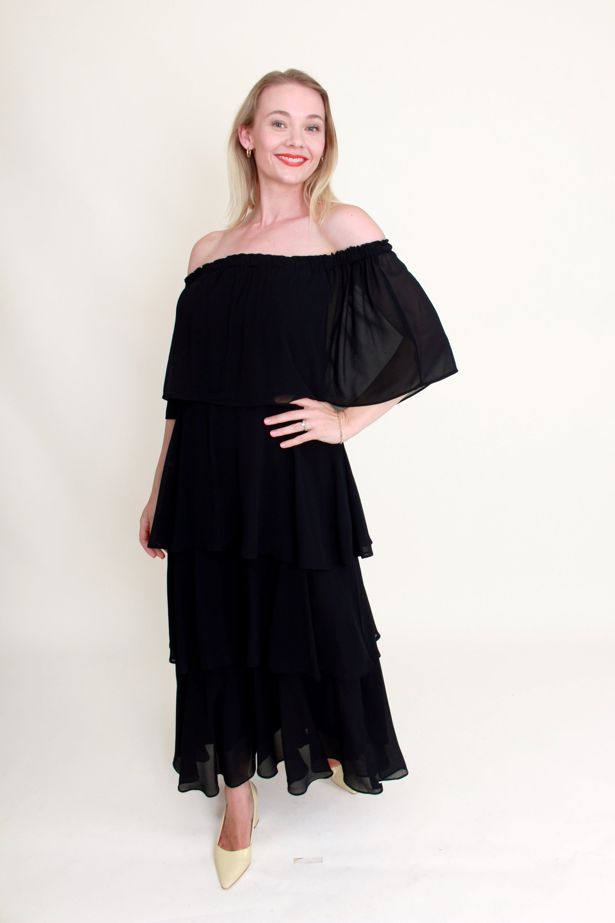 The Magazine Paloma Dress makes a statement through soft tiers and graceful movement, designed for occasions that call for confidence and impact. The elasticated neckline can be worn on or off the shoulder, allowing you to change the look to suit the moment, from relaxed daytime styling to elevated evening wear. Lightweight chiffon layers fall through a maxi length, skimming the body with beautiful fluidity and a soft, romantic finish. Easy to dress up with heels and jewellery or pared back with flats, this is a versatile piece you will reach for again and again!