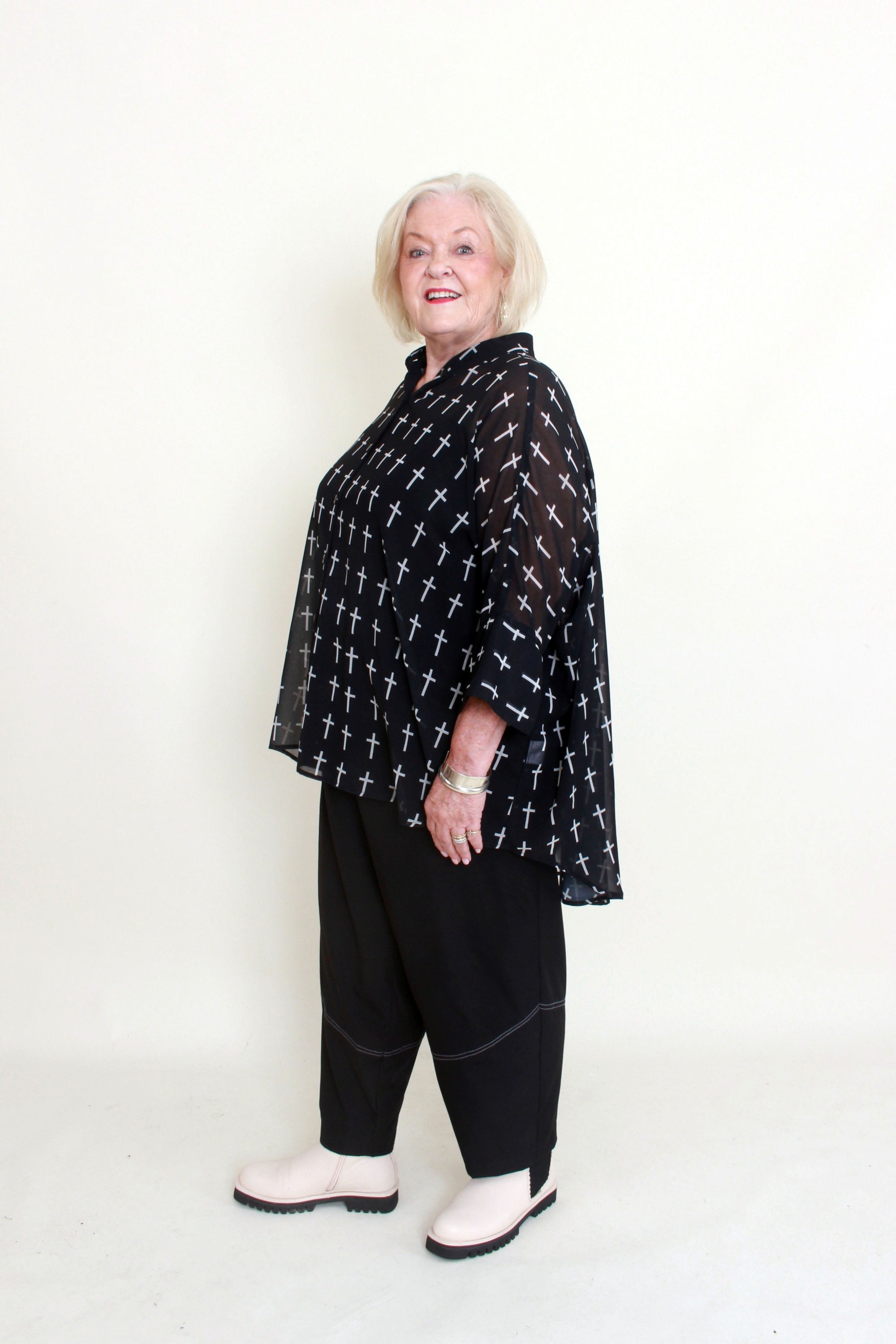 Created exclusively for Magazine, the Blanc Cross Shirt is beautiful and lightweight to wear. Made in New Zealand in a lovely polyester chiffon, this style is semi-sheer, designed to be worn either buttoned or open over a cami or dress. Featuring a collar and a floaty half-sleeve, this is a beautiful finishing touch for every season!