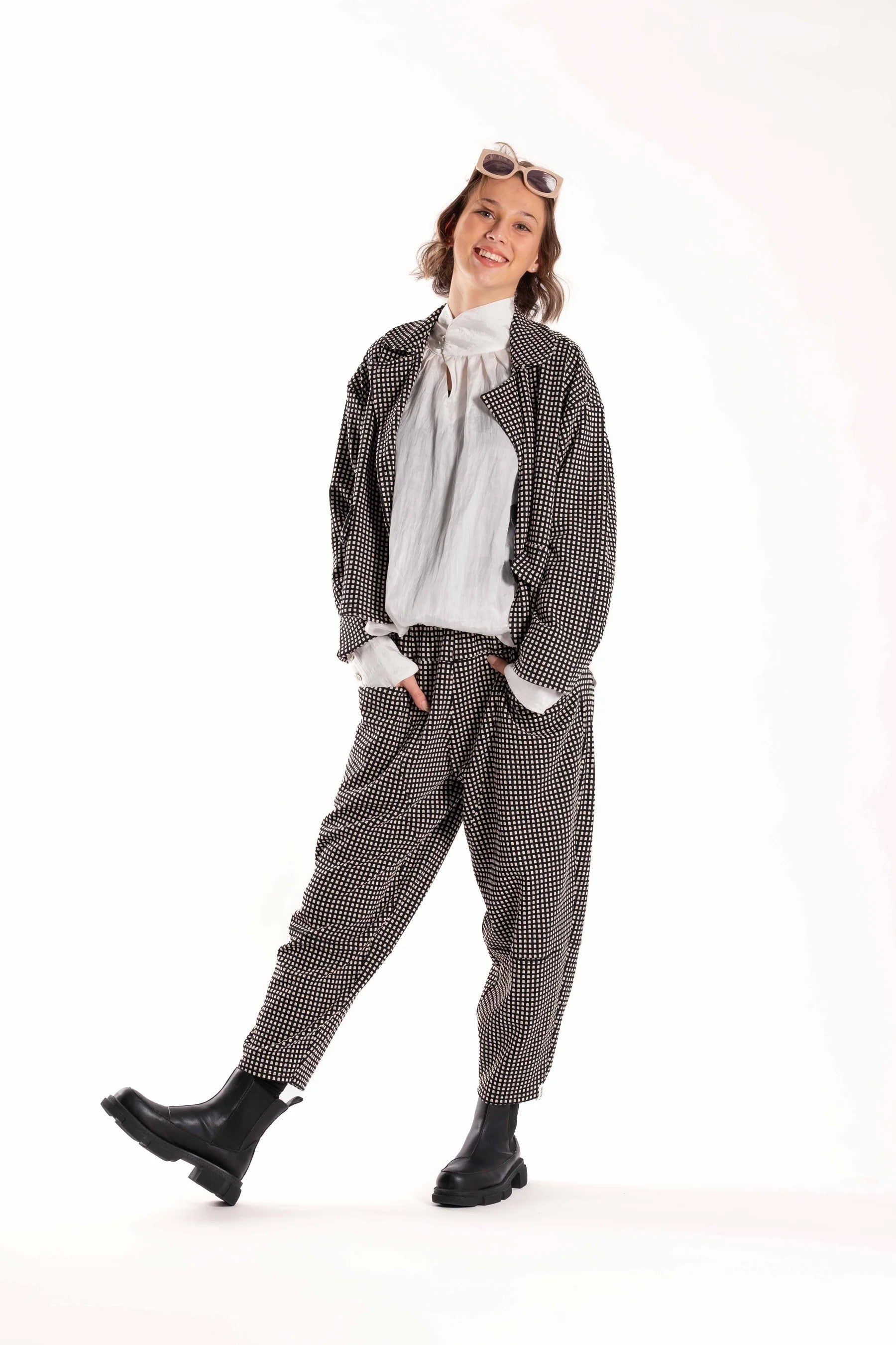 Cut in Deeanne's best-selling shape, the Command Pant in Checked Out is so easy to wear! Featuring a sculptural leg and nice big pockets for draped detail. Pair with the Chopper Jacket to complete the look!