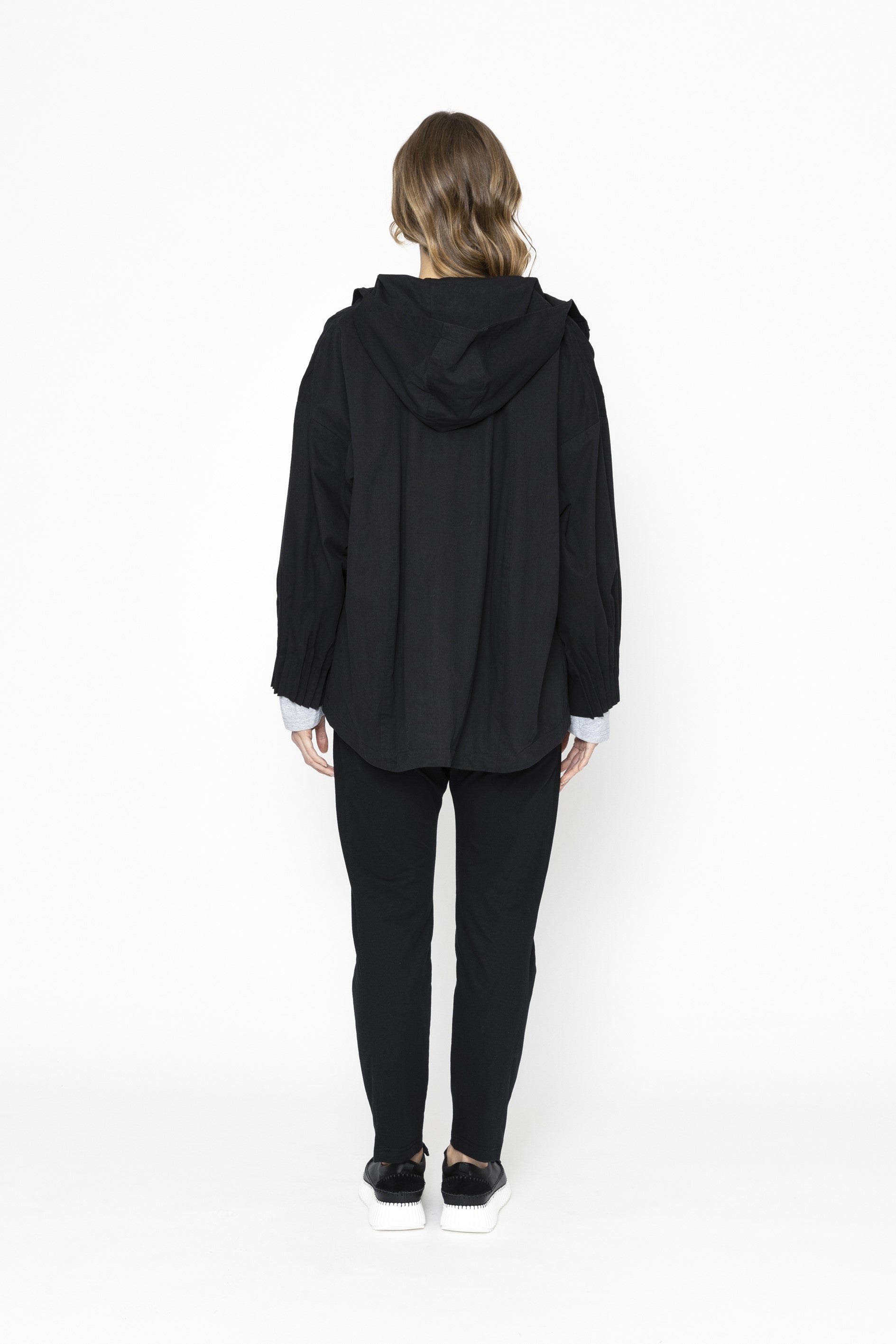 The Two by Two Zelle Jacket is a classic and practical style with elevated details. Featuring a hood and both zip and button closures, this style adds a lovely layer of warmth. Pleating through the middle adds an element of interest.