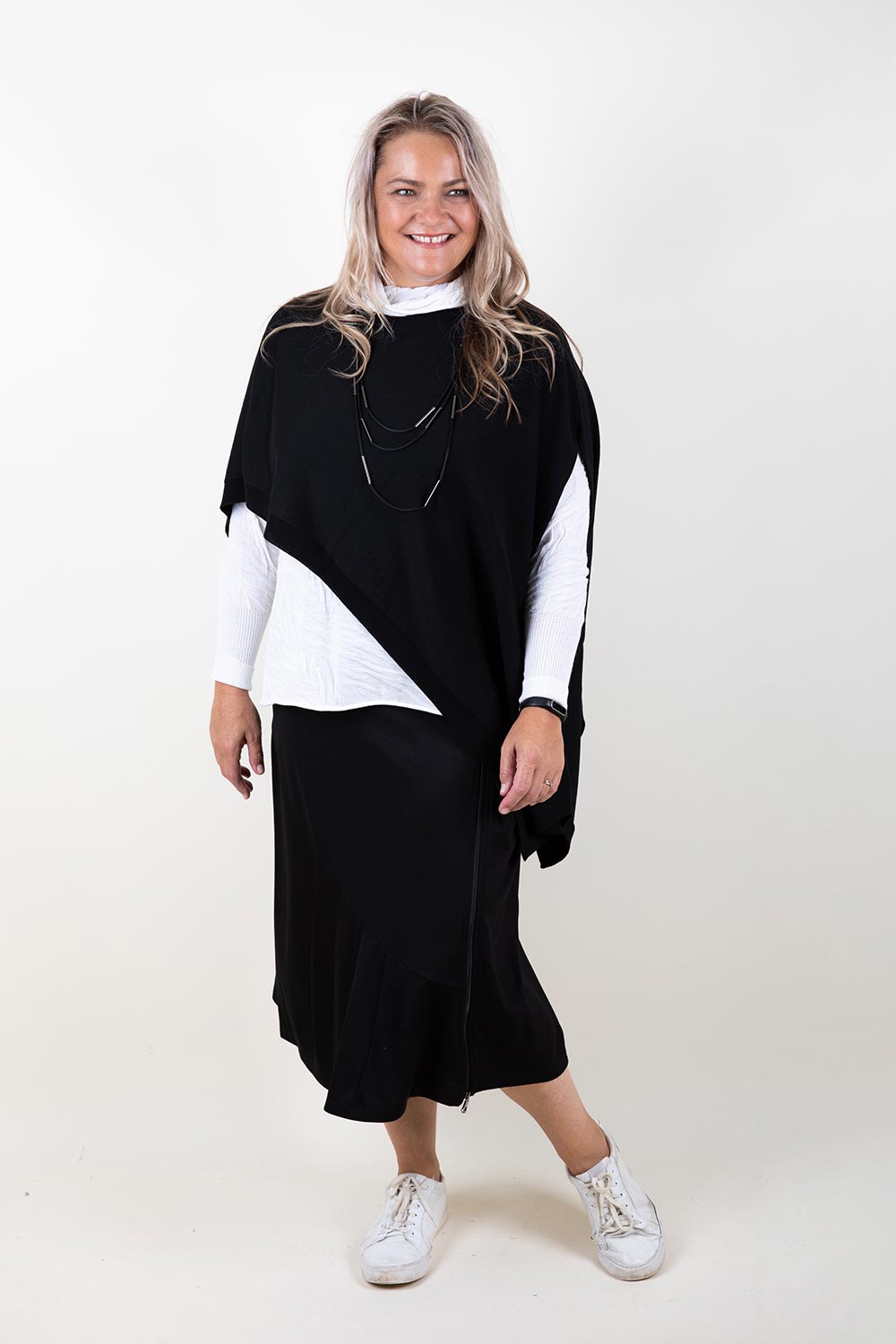 A fabulous skirt for work or play, the Zip Skirt by Ever Sassy oozes effortless versatility. Cut in a soft and stretchy Ponti, this A line skirt finishes just below the knee. Zip detailing and an angled panel at hem lifts this skirt out of the ordinary!