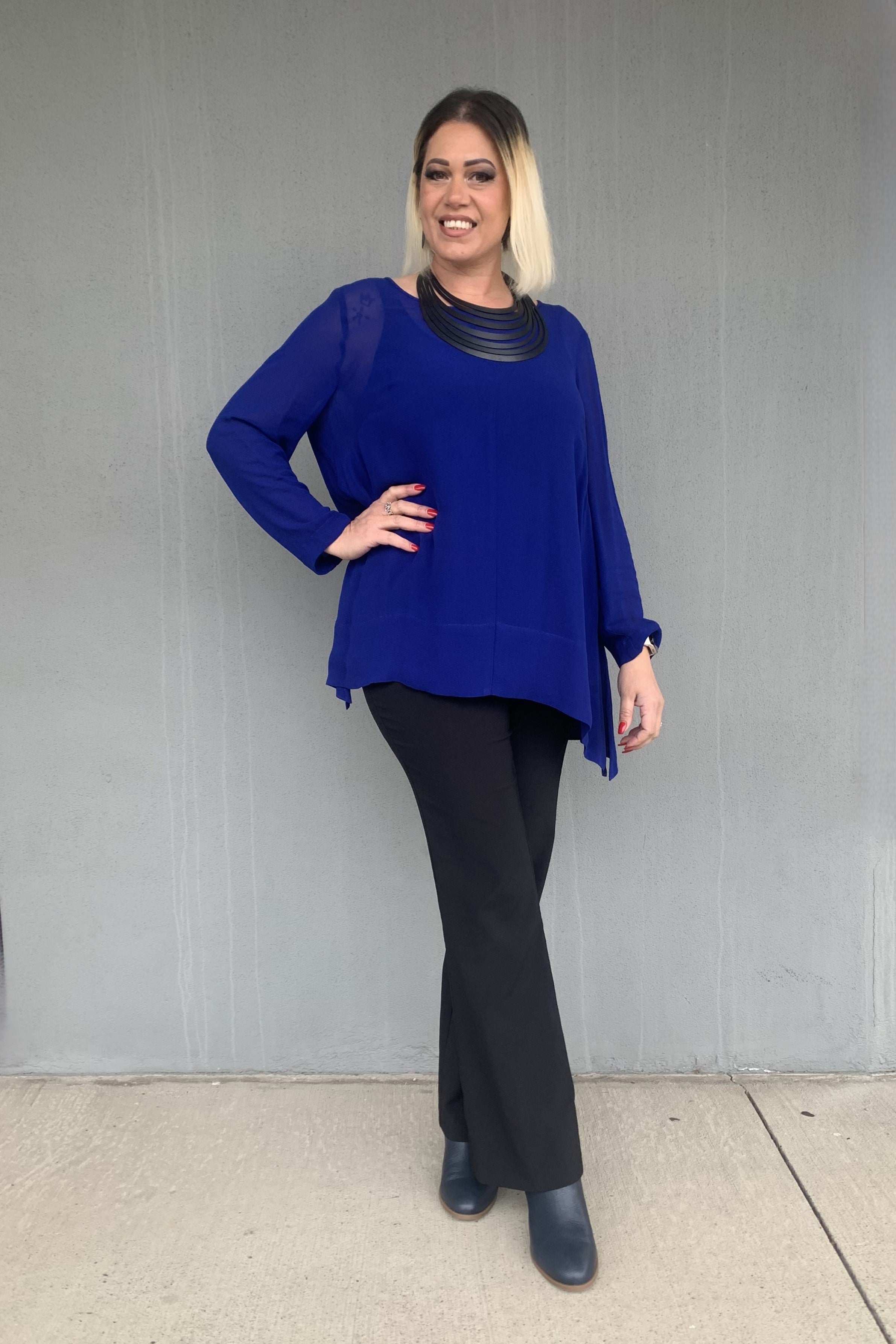 Niovara's Oslo Top looks set to be another sell out! Proudly made in New Zealand, and cut in a semi sheer viscose, this versatile design features side splits with a curved hem to flatter the body.
