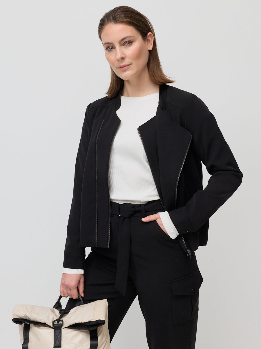Elevate your wardrobe with the Marco Polo Double Front Traveller Jacket, combining classic tailoring with a modern edge. Perfect for everyday wear with an asymmetrical zip adding subtle interest and contemporary flair. Perfect for pairing with the Traveller Cargo Pant, this jacket offers versatility without compromising on style, making it a go-to piece for cooler weather.