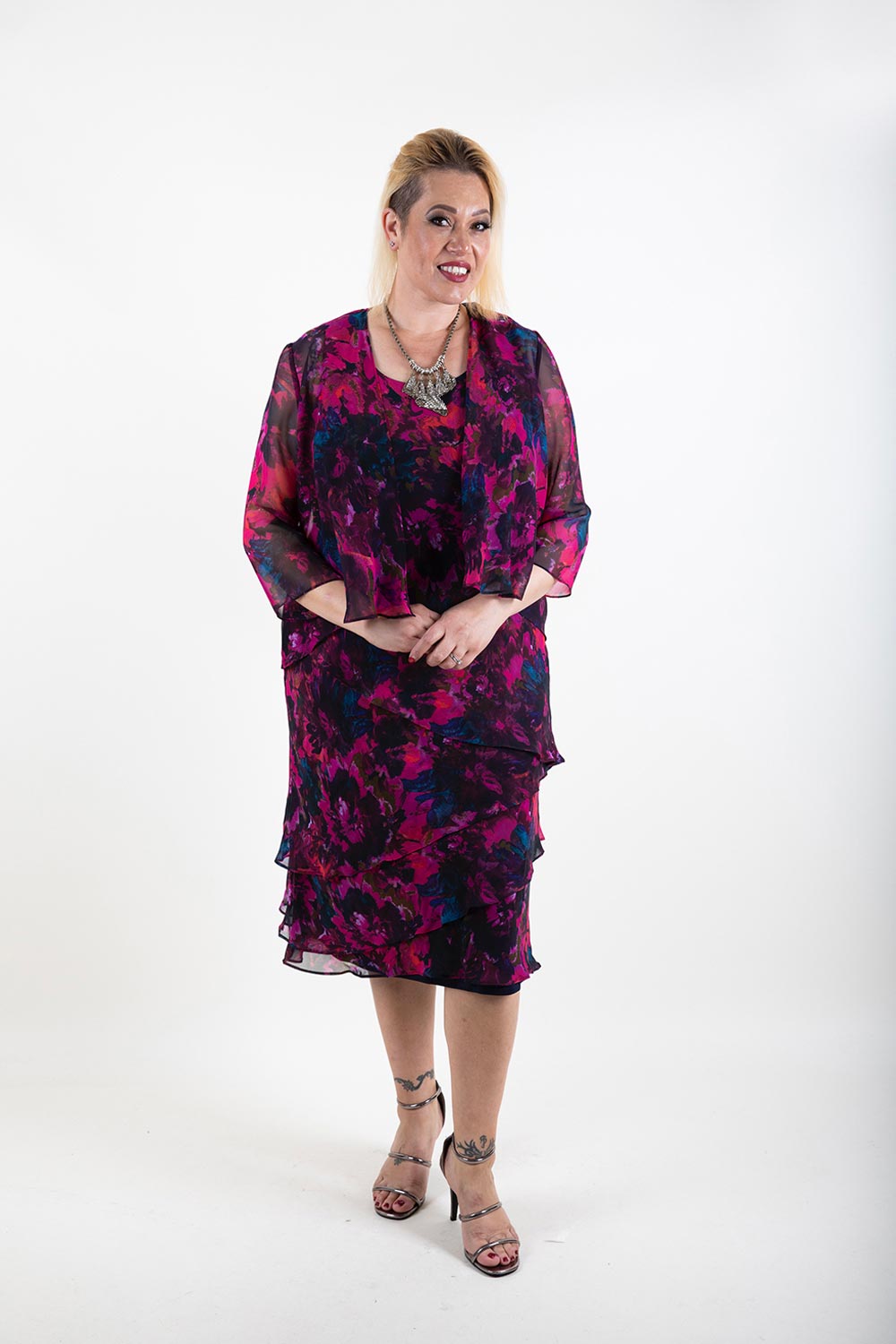 Offered in the stand out Floral Print colourway, this Layla Jones Layer Dress and Jacket will ensure you'll be the belle of the ball at your next special occasion. Cleverly constructed layers of soft chiffon offer shape and drama while flattering all shapes and sizes. With the addition of the matching jacket, this is your one-stop-shop for easy event dressing.
