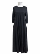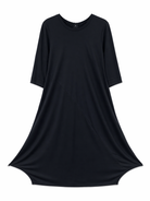 The Bittermoon Surprise Dress gives the elegant look of a dress with the comfort and practicality of a jumpsuit. Crafted from a soft rayon-nylon blend, it drapes beautifully over the body to create a fluid, flattering maxi-length silhouette. Featuring a classic round neckline, 3/4 sleeves, and practical pockets, this versatile black style is the ultimate throw-on-and-go piece - effortlessly combining comfort with understated sophistication. Made in New Zealand, it’s an easy wardrobe essential you’ll reach for again and again.
