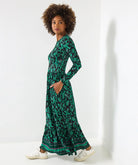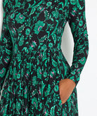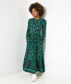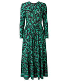 Designed with a softly flowing silhouette, this black and green printed midi dress moves beautifully with you, while the long sleeves add balance for cooler days. The full skirt adds a sense of ease and shape, making it ideal for everything from daytime plans to relaxed evenings out.