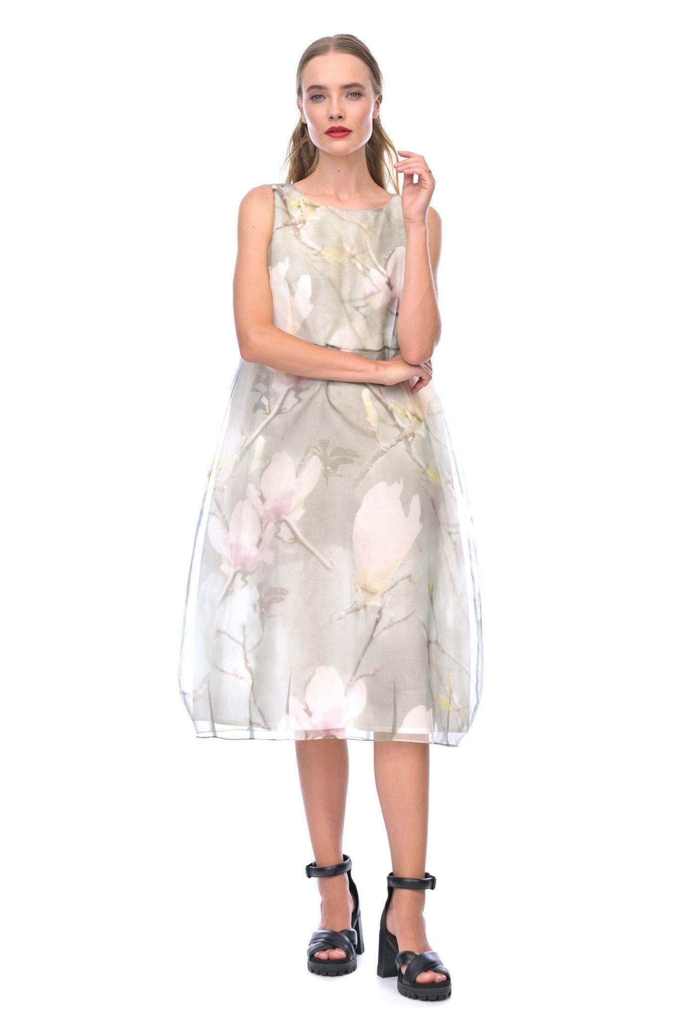 The Magnolia Romance Shift Dress by Megan Salmon is an exquisite piece that exudes elegance and sophistication. Its soft cocoon shaping with pintucks makes it a comfortable and flattering fit. This dress is made from luxurious silk organza print designed by Megan Salmon known for her work as a textile artist, The Magnolia Romance Shift Dress perfectly complements the Magnolia Noble Coat, making it ideal for any formal event, especially as a mother of the bride or groom!