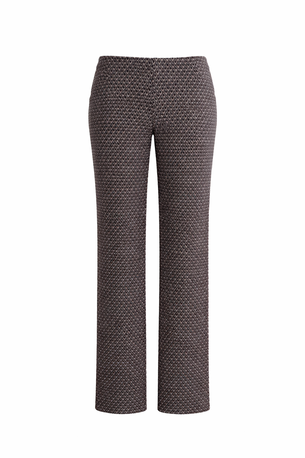The best-selling Slim Leg Pant by Bittermoon is back. Crafted in a soft, stretchy geometric check slim leg pant, this black, cream and beige print brings fresh interest to your winter wardrobe essentials. Proudly made in New Zealand, this New Zealand made slim leg pant features a smooth flat front for comfort and an easy fit, finished with faux jet pockets at the front for a clean, polished look. Designed with shape in mind, it pairs effortlessly with knitwear, shirts, and tailored layers for everyday wear.