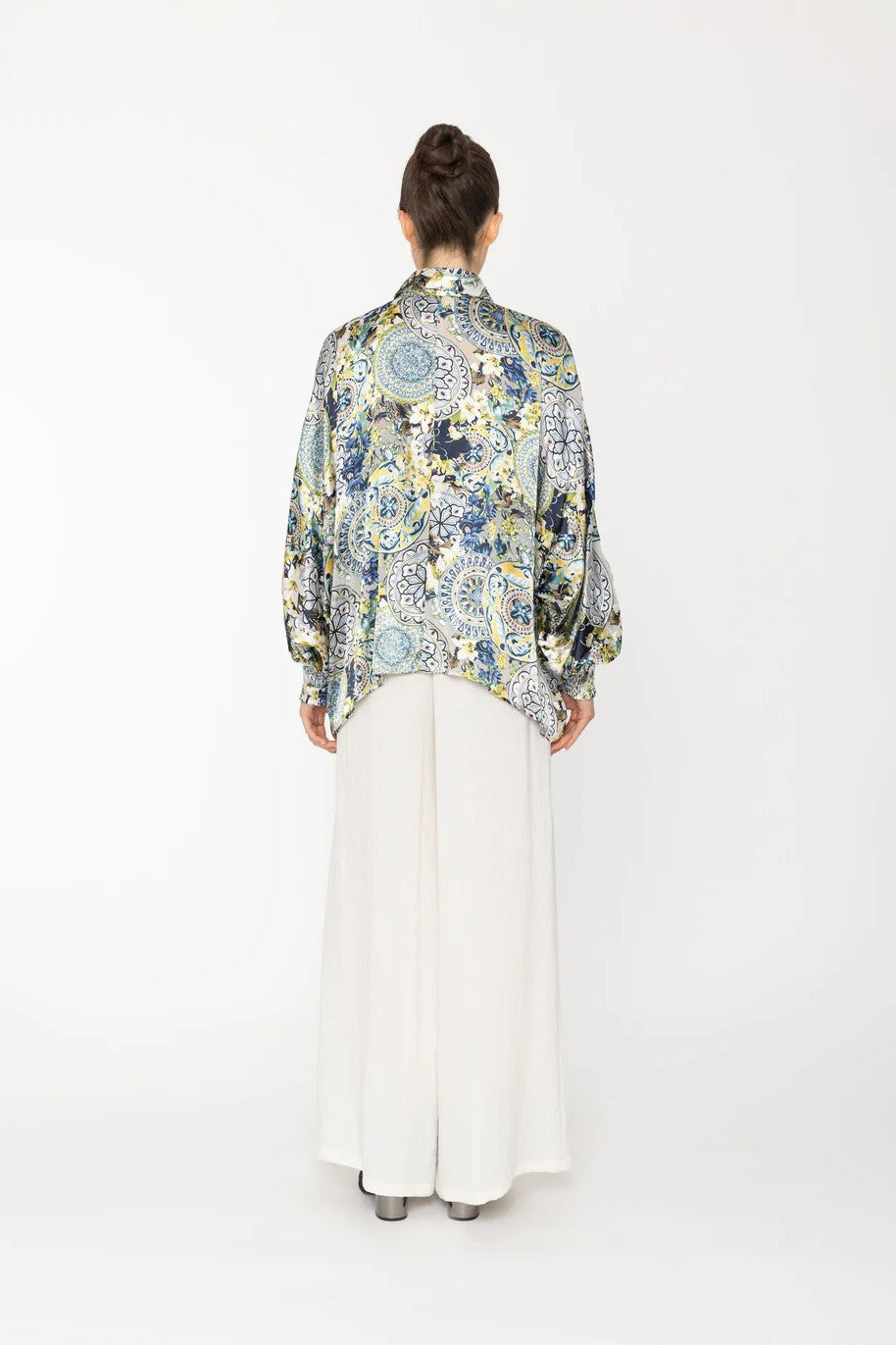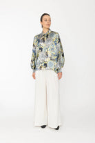 The Inka Shirt by Blacklist is understated luxury with contemporary style, featuring a soft sheen that elevates any outfit. Designed with a curve-hem and blouson sleeves, it adds gentle volume and movement for a relaxed yet polished silhouette. The button-through front and all-over print bring classic tailoring touches with a modern, stylish twist, making it perfect for workwear or weekend dressing.