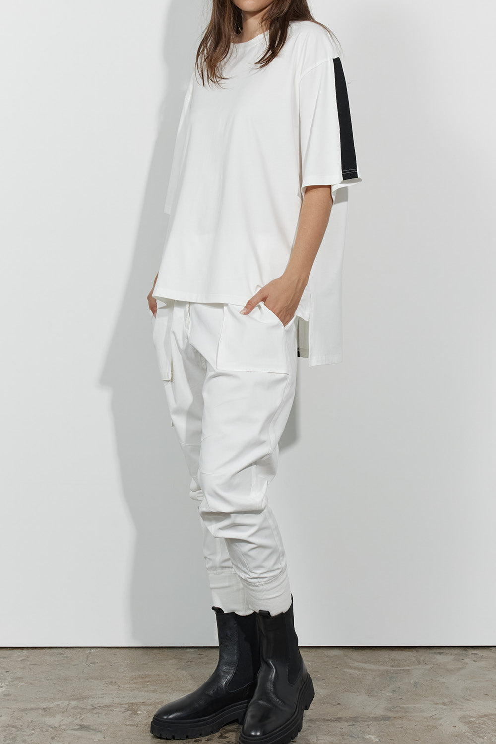 Where effortless comfort meets modern design, the Core Tee by Dref by D brings a fresh, architectural twist to your everyday wardrobe. Crafted from a premium stretch cotton blend, it drapes in a relaxed, boxy shape that feels easy while still holding a clean, structured line. Contrast strap detailing traces the back and sides for a subtle hit of edge, giving the silhouette depth and interest without overwhelming its simplicity.