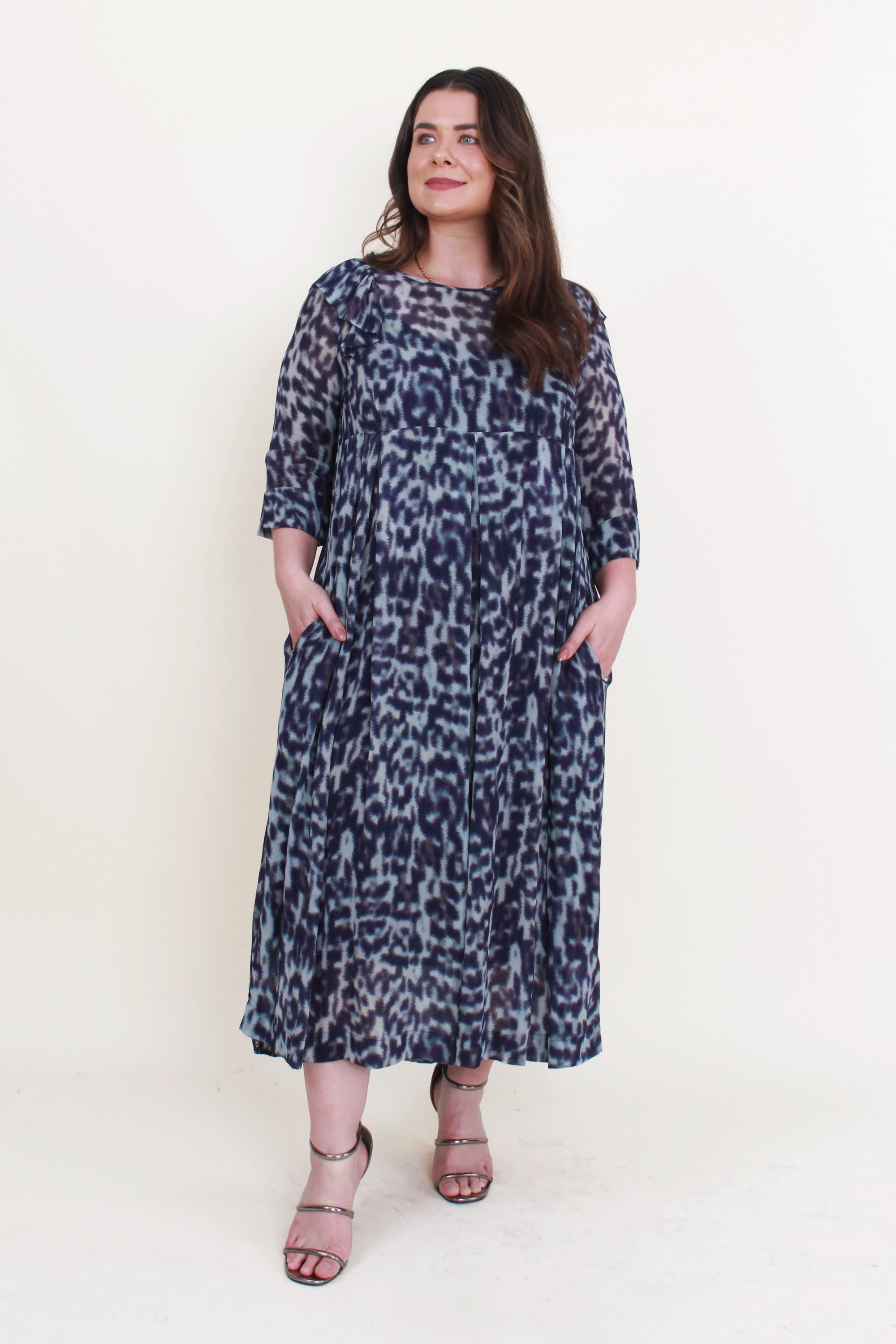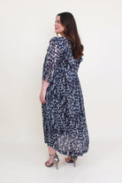 Embrace bold beauty with the Furtive Haven Dress by Niovara! Showcasing a striking blue jungle print, this midi dress features flattering 3/4 sleeves and gentle soft pleating for graceful movement. Whether you're heading to brunch or a special event, this dress brings effortless style and standout charm to any occasion!