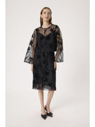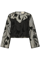 The Soaked in Luxury Philomena Blouse in black brings texture and elegance to any outfit. Crafted from delicate sheer mesh with a velvet pattern, this black mesh blouse creates a refined statement while remaining easy to style for day or evening.