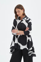 The Print Swing Back Shirt from Tirelli reinvents the timeless collared button up shirt. A stand-out choice for both casual and business-casual occasions. Elevate your wardrobe rotation with this modern classic.