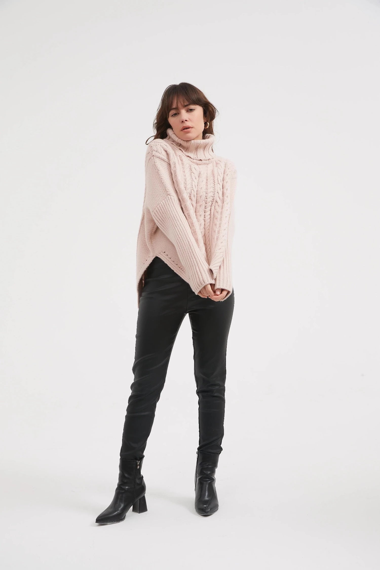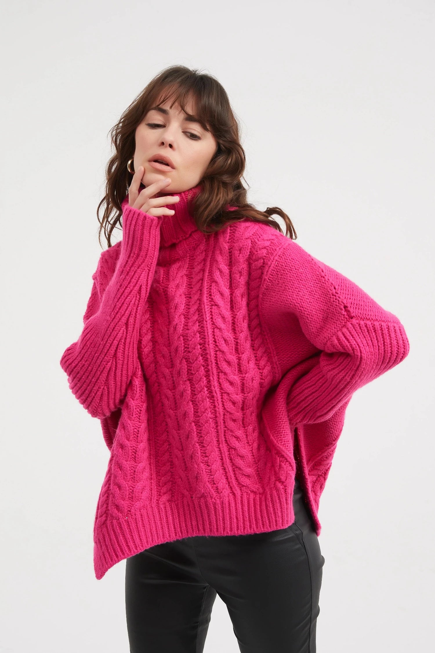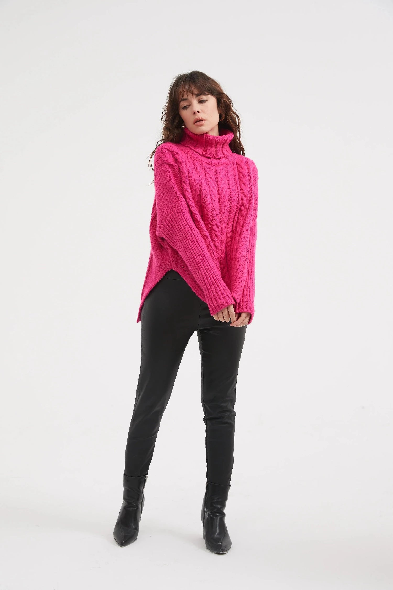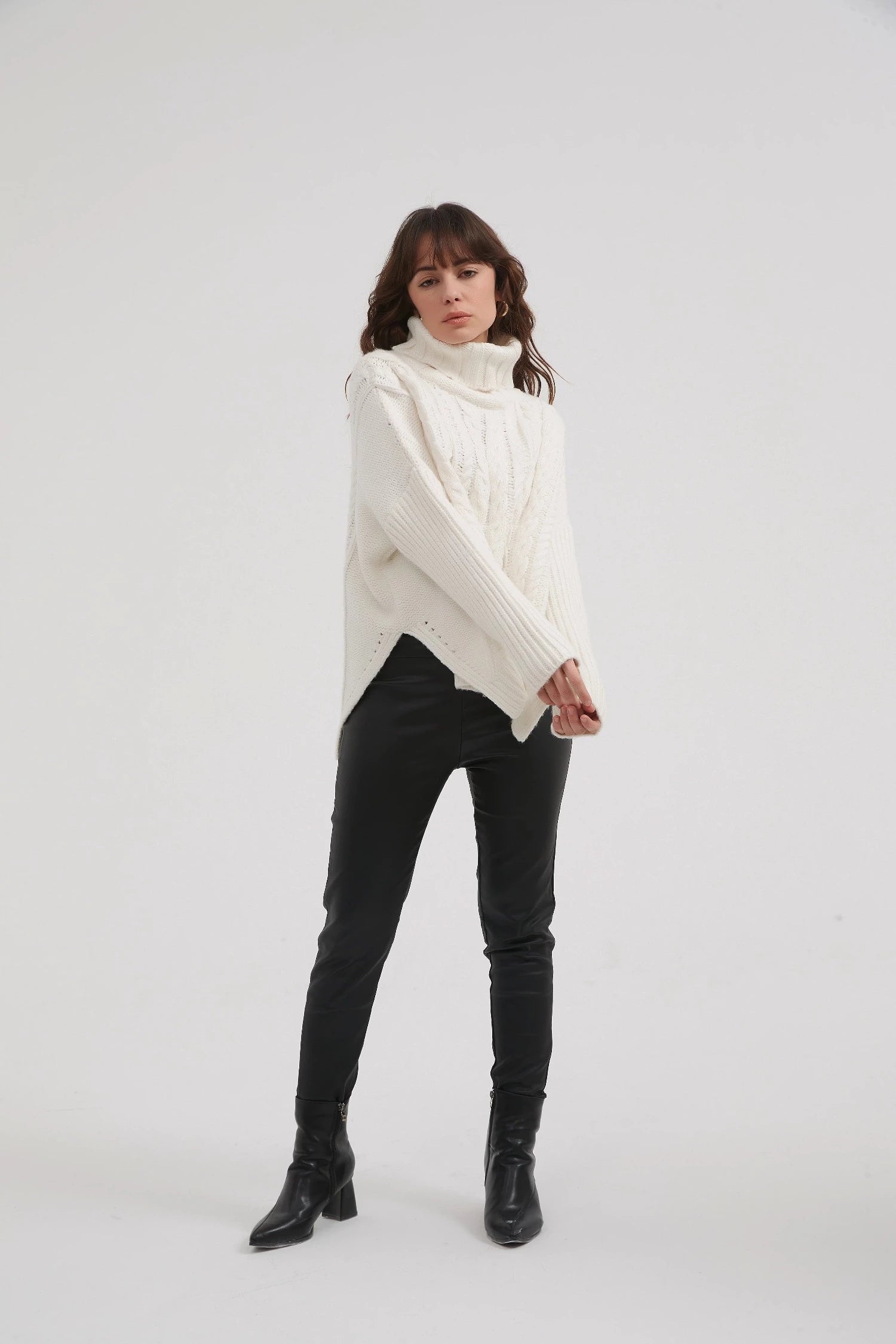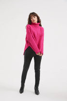 Cable knits are one of the key trends of the season, with Tirelli’s High Neck Cable Knit being such a great showcase of the trend. Cut in a soft handle cotton blend knit and offered in three fabulous colourways, this gorgeous design features cable knit front and back with a hi Lo hem. Contrasting rib knit features on the roll neck and the sleeve. Perfect for pairing with denim, this style is ideal for everyday wear.