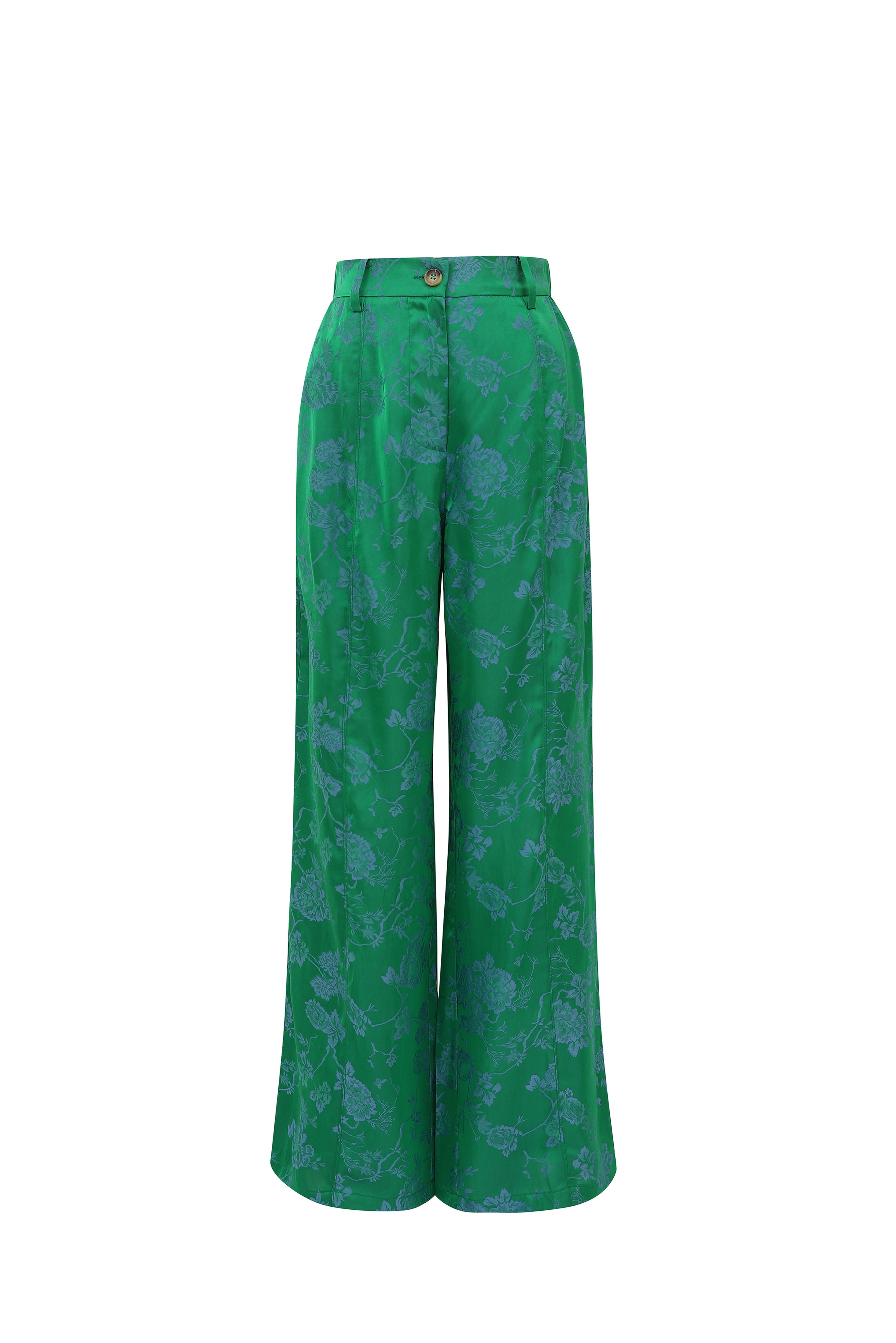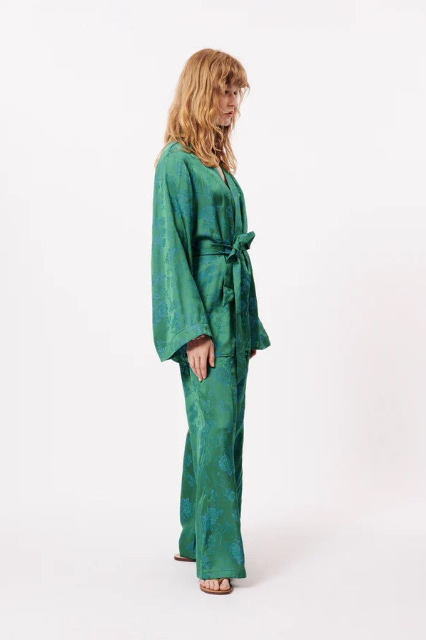The FRNCH Zita Trousers are sure to be your new go-to statement pants! Cut in a gorgeous emerald, adorned in subtle lavender florals. Let them shine by simply pairing with a plain tee, or complete the set with the Clervie Wrap Kimono.