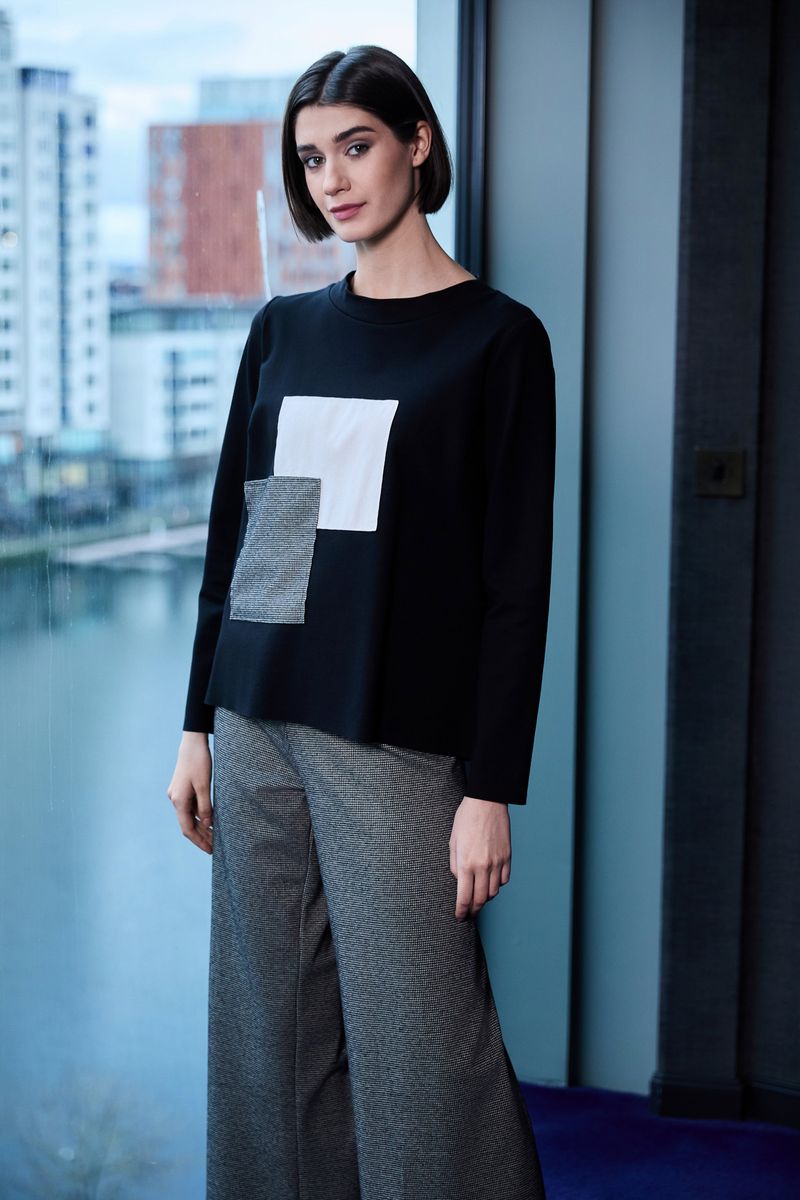 Featuring a flattering round neckline and chic square detailing, this top elevates everyday dressing with a refined edge. Whether you pair it with tailored trousers for a polished look or with denim for easy weekend style, it’s a versatile wardrobe staple with timeless appeal.