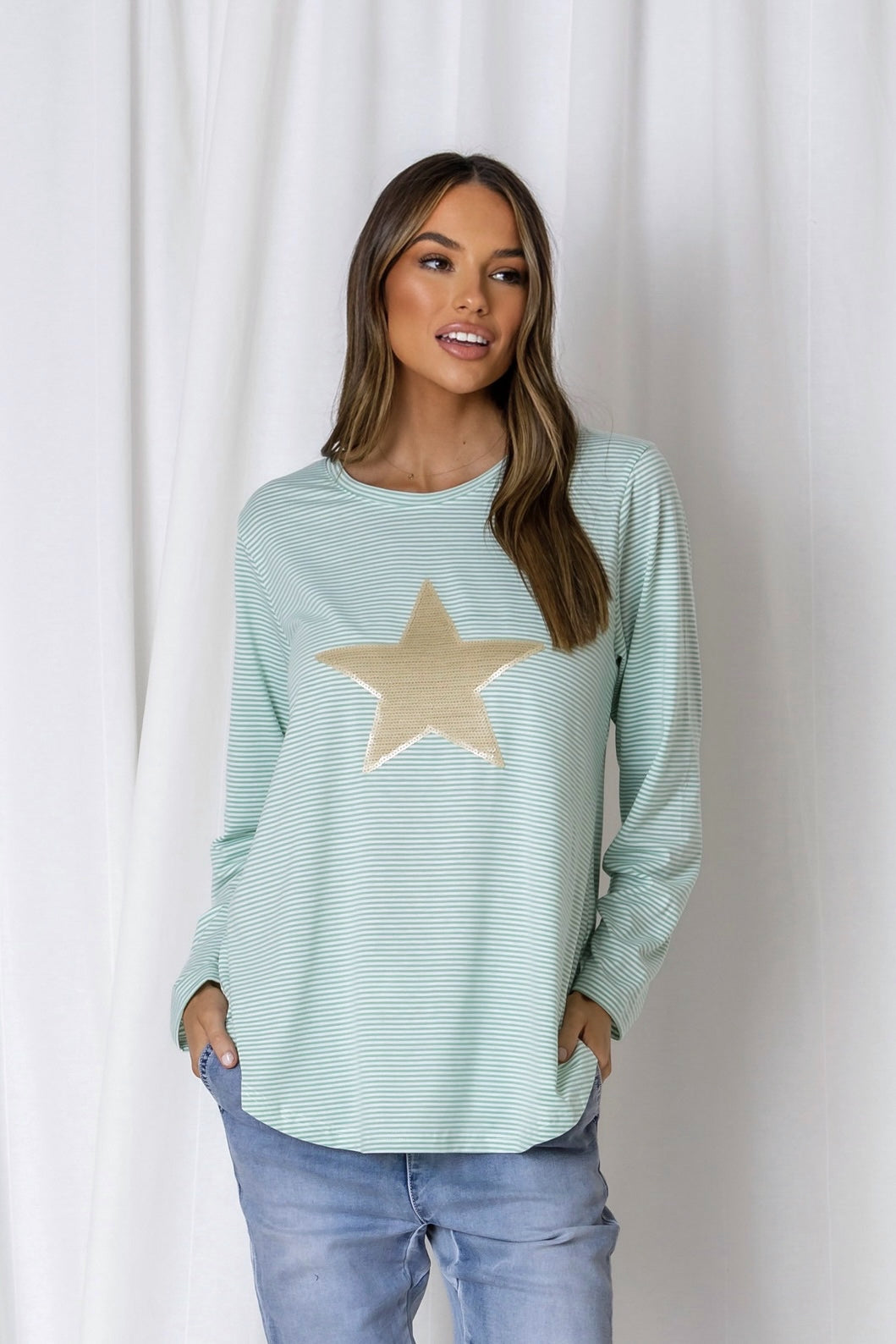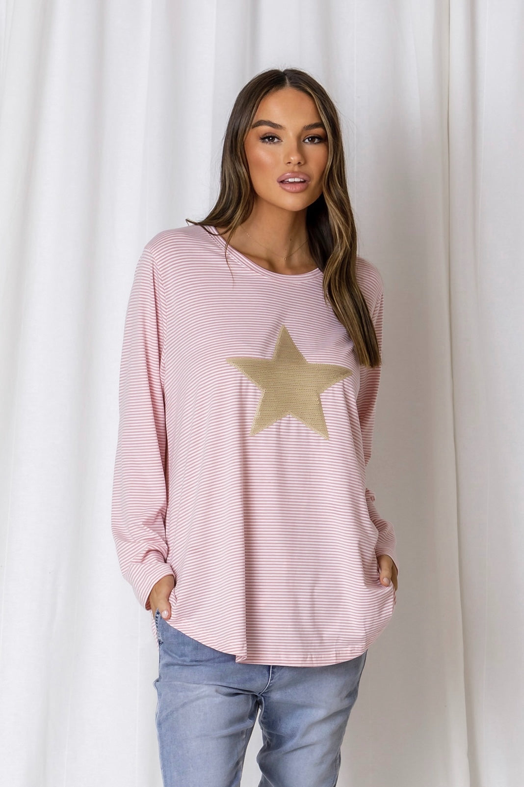 Freshen up your weekend wardrobe with the Love Lily Billy Star Long Sleeve Tee. Made from 100% breathable cotton, this everyday essential comes in two playful stripe options – pink and white or mint and white. Designed with a relaxed fit, classic round neckline, and a flattering curved hi-low hem, it’s the kind of top you’ll reach for again and again. Just add your favourite jeans for effortless off-duty style.