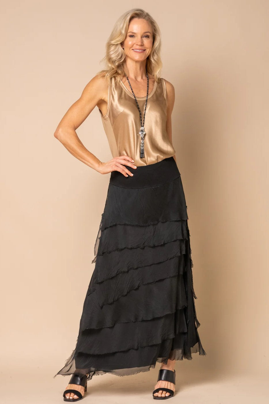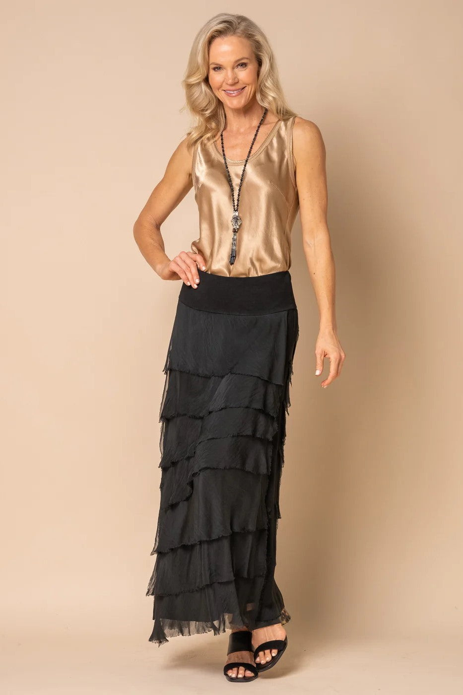 The Imagine Fashion Fifi Skirt will instantly become your favourite go-to piece to wear over and over again! It is made from a stretch cotton base covered in silk, which makes this skirt very comfortable, as well as stylish. Perfect paired with the Farah Silk Top!