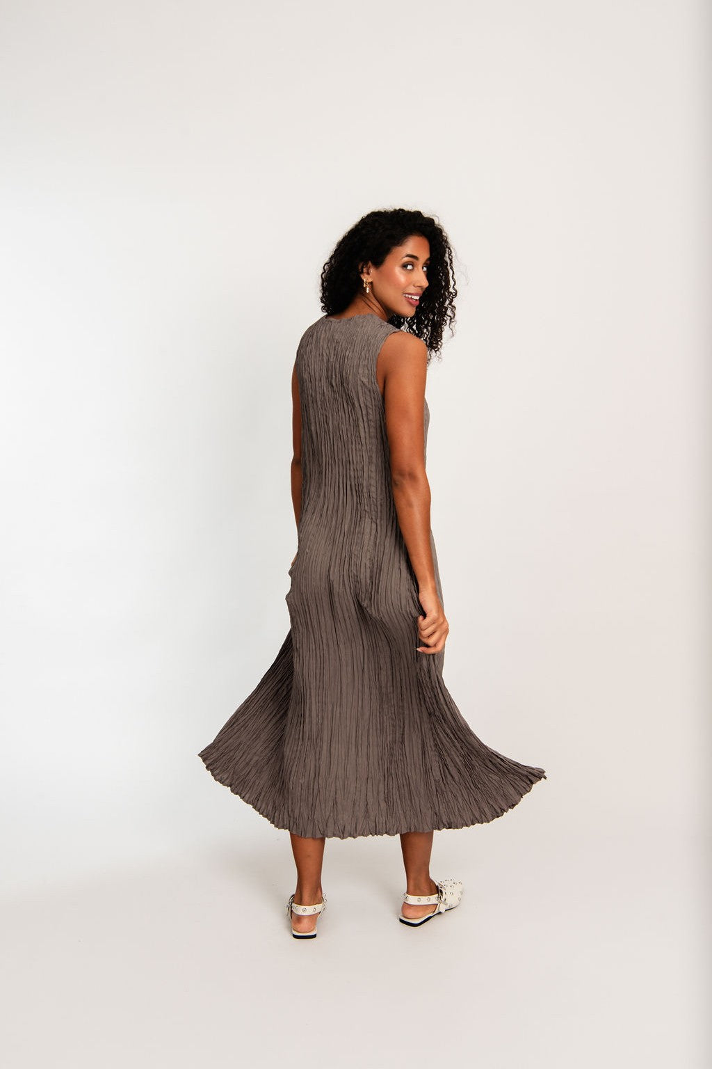 Cut in an intricate crinkle satin, the Alquema Havana Dress features a Vee neckline and cocoon shaping This style falls beautifully on the body, you'll never want to take it off! Pair with the matching Havana Coat.
