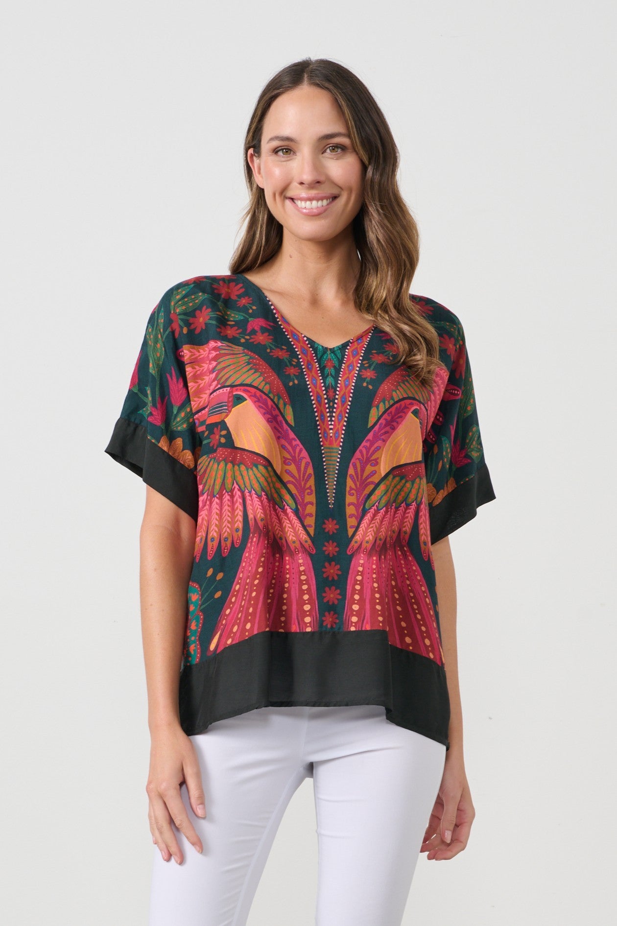 The Caju Kaleidoscope Toucan Blouse is a joyful mix of colour and print, designed to brighten every occasion. With its flattering V neckline and soft flutter sleeves, this lightweight blouse strikes the perfect balance between playful and polished. Wear it with tailored trousers for a modern edge or pair it back with denim for relaxed everyday style. A versatile piece that feels effortless yet full of personality, it is an easy way to bring vibrant charm to your wardrobe!