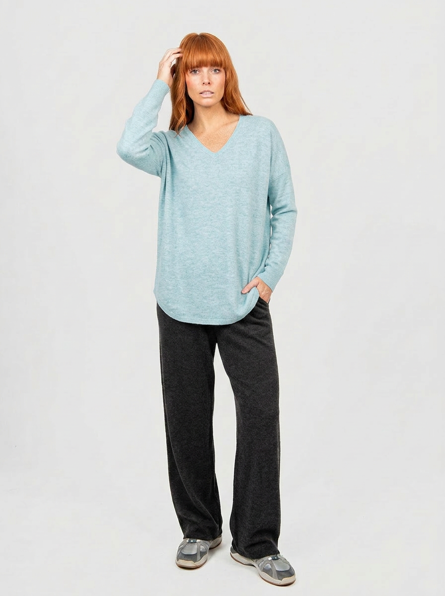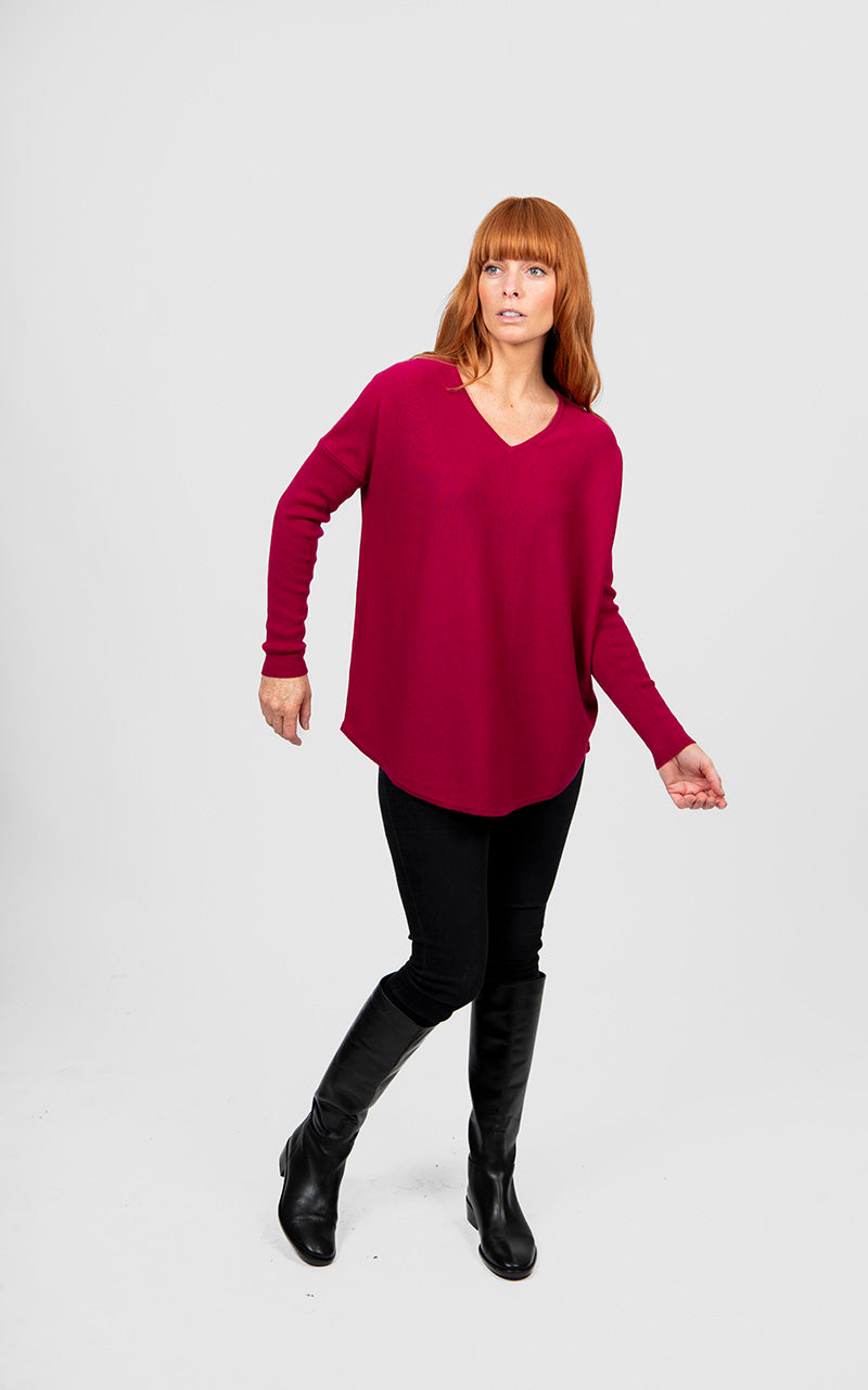 Elevate your style with Bridge and Lord's Queen Vee Curved Hem Pullover. A sell-out style Winter after Winter, this style is a must-have! A great knit option for casual days, this V-neck pullover has a super-soft feel and a longline shape for cozy versatile styling options. The relaxed shape is accentuated by a flattering V-neckline and curved hem with full-length rib sleeves. Pair it with jeans, tailored trousers or wide-leg joggers – or wear it over or under other garments, or on its own. It’s great teamed with a big coat to see you through winter, too. It's expertly crafted from Bridge and Lord's signature merino cashmere yarn for the ultimate in luxury knitwear